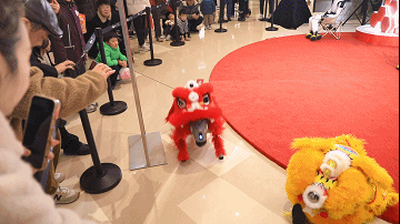 在商场东区的科普启蒙区,这里已然成为了“硅基生物”的欢乐派对。一只身披狮头服饰的机器狗摇头摆尾,踩着鼓点灵活腾挪;旁边身高仅90厘米的小型机器人则憨态可掬地完成了高难度的“舞狮”动作,引得围观的小朋友们阵阵惊呼。这正是本届庙会的“机器人天团”正在C位出道。