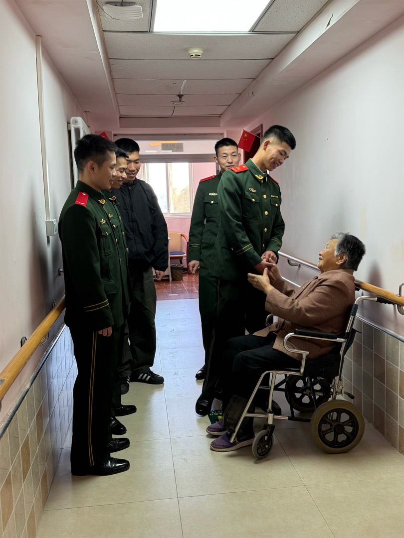 在老党员家中,官兵们庄重敬礼,与老前辈亲切拥抱,聆听革命故事,传承红色基因;在社区养老中心,他们与老人促膝长谈,共唱红色歌曲,用陪伴驱散孤独;在便民服务点,官兵们化身理发师、保洁员,为老人修剪头发、打扫卫生,把贴心服务送到群众心坎上。