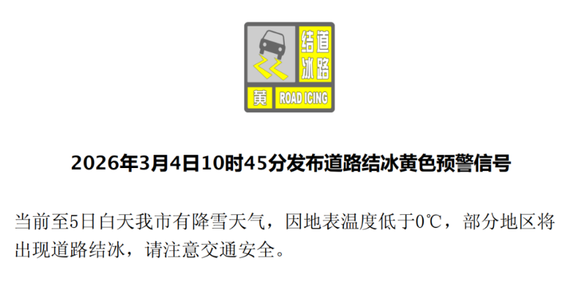 降雪导致路面湿滑,能见度差,将影响4日晚高峰和5日早晚高峰,北京市气象台已发布道路结冰黄色预警信号,注意防雪防滑和出行安全。