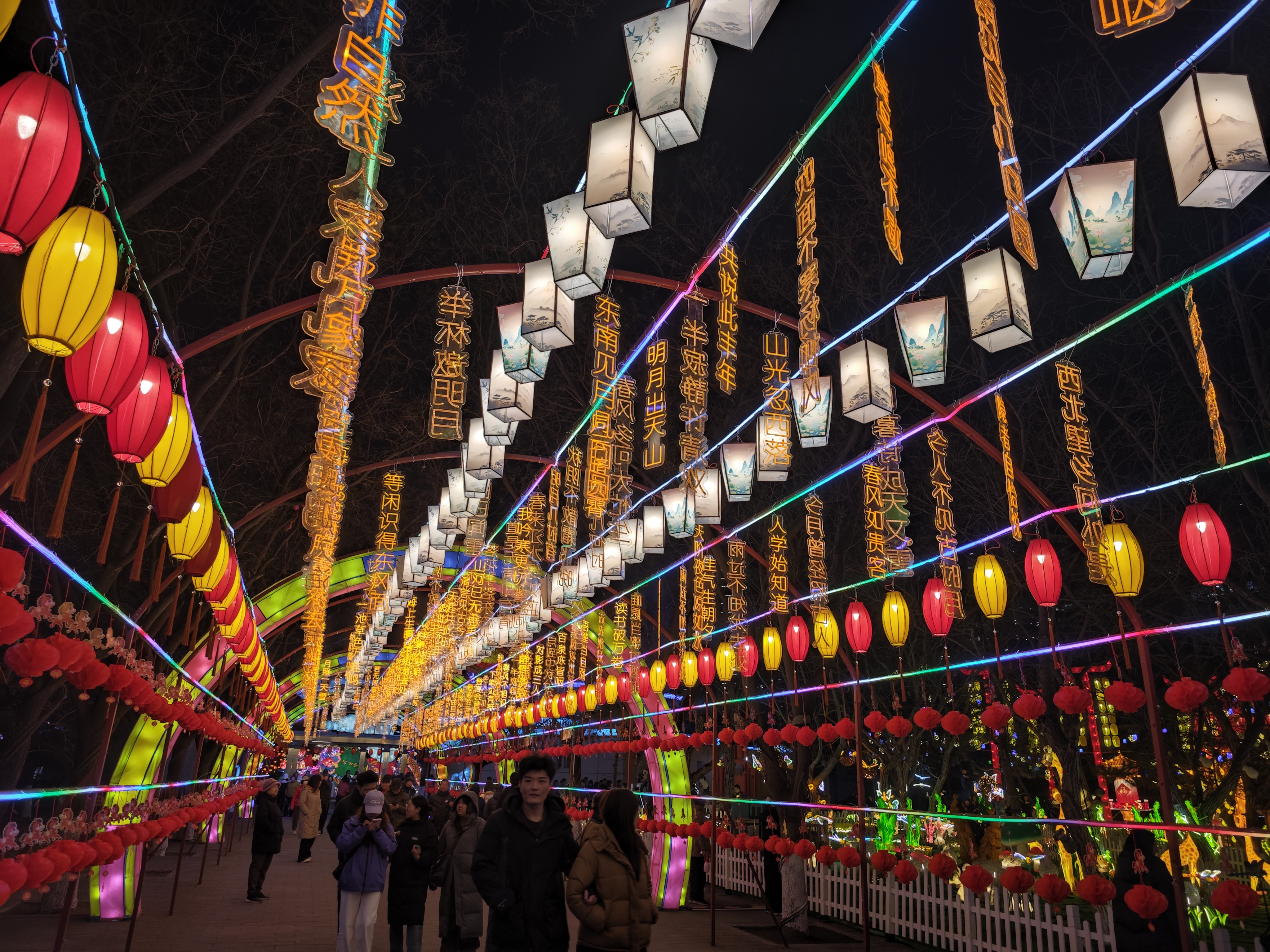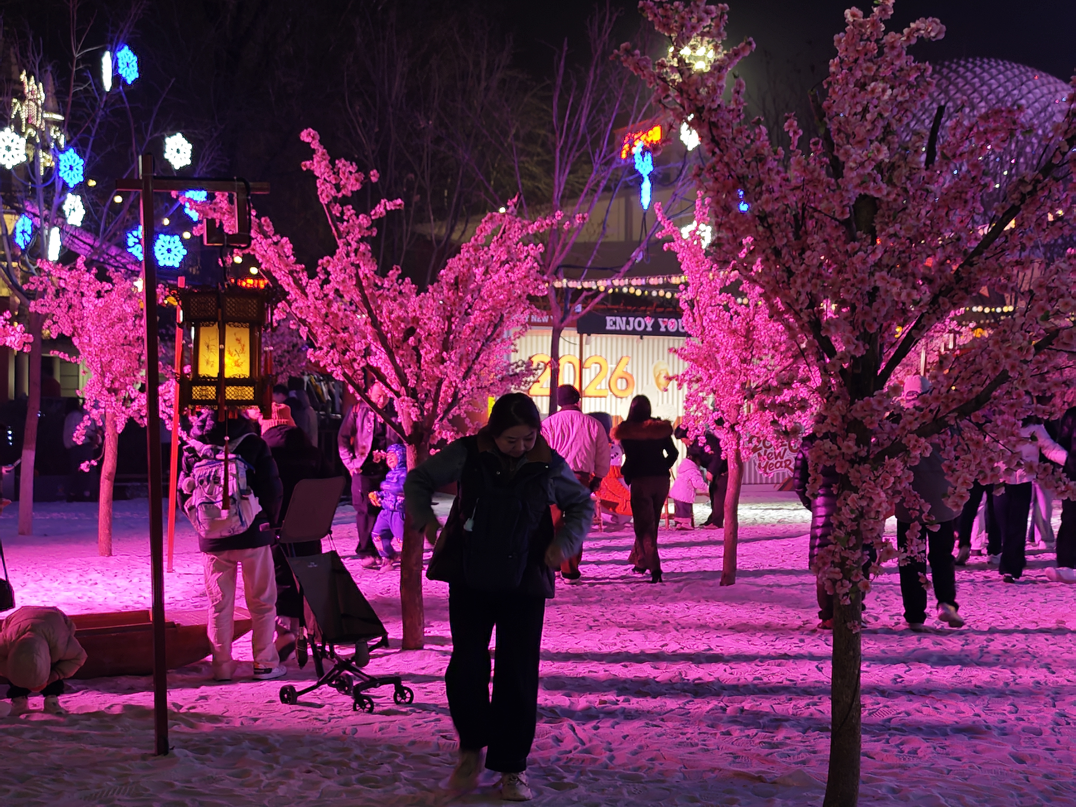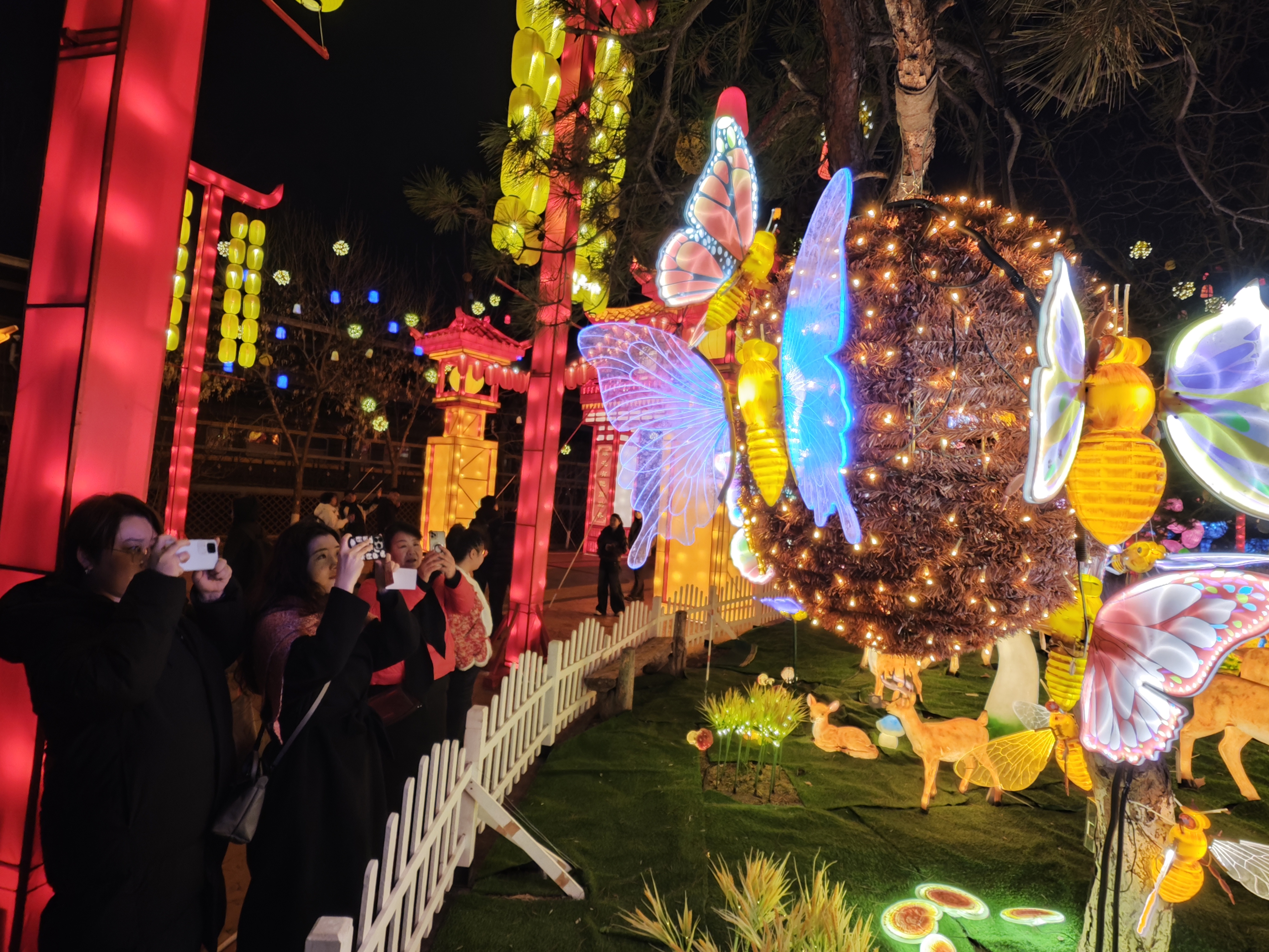 3月3日元宵节夜晚,石景山游乐园成为欢乐的海洋,游客赏花灯、猜灯谜、观看打铁花、品美味小吃,尽情享受元宵节的快乐。