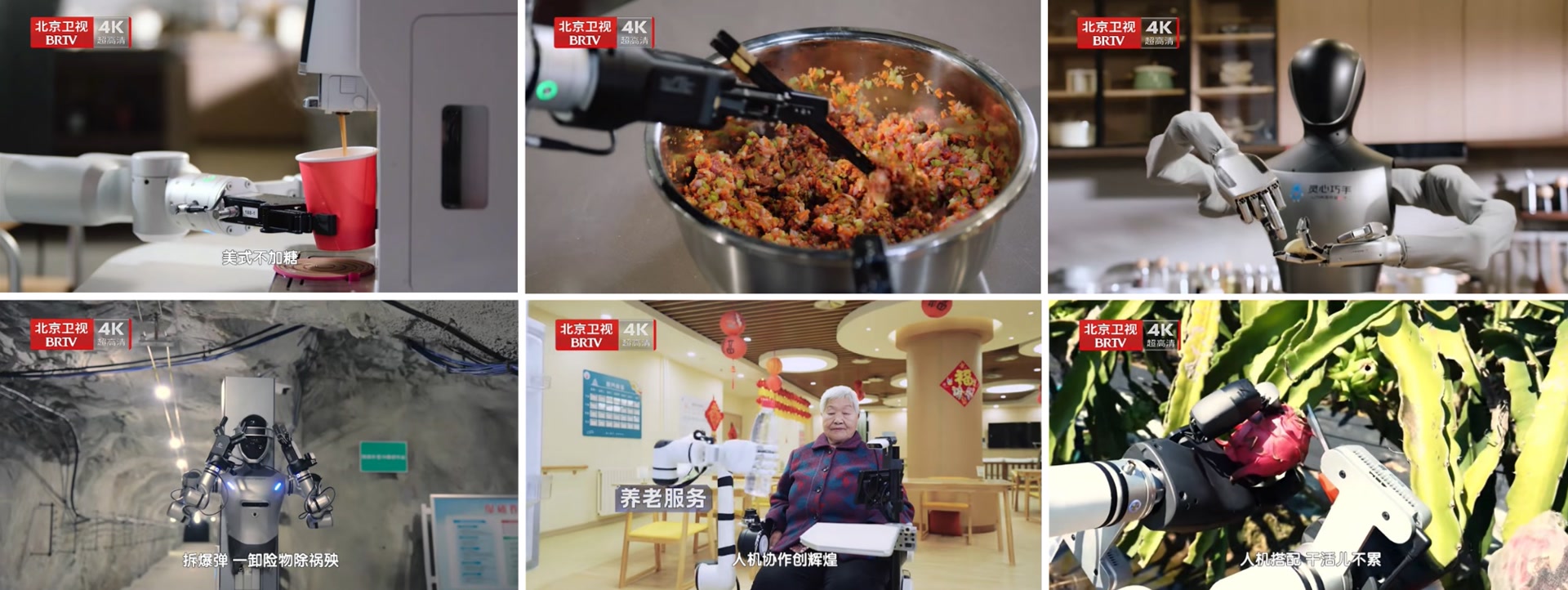 在北京广播电视台春节联欢晚会的机器人短片《我们的除夕夜》节目中,来自10家北京具身智能品牌的20台机器人齐聚一堂,全景呈现机器人服务于人的全流程实用技能,完成了包括打咖啡、穿针线、包饺子等精细化操作,同时还展示了机器人在救灾、养老、农业等真实场景中的应用。作为这一节目的核心技术支持单位,睿尔曼不仅以自研超轻量仿人机械臂为同台的多家机器人产品提供支撑,更携自研的RealBOT轮式折叠机器人深度参与此次节目,具象化演绎科技为生活带来的便利。