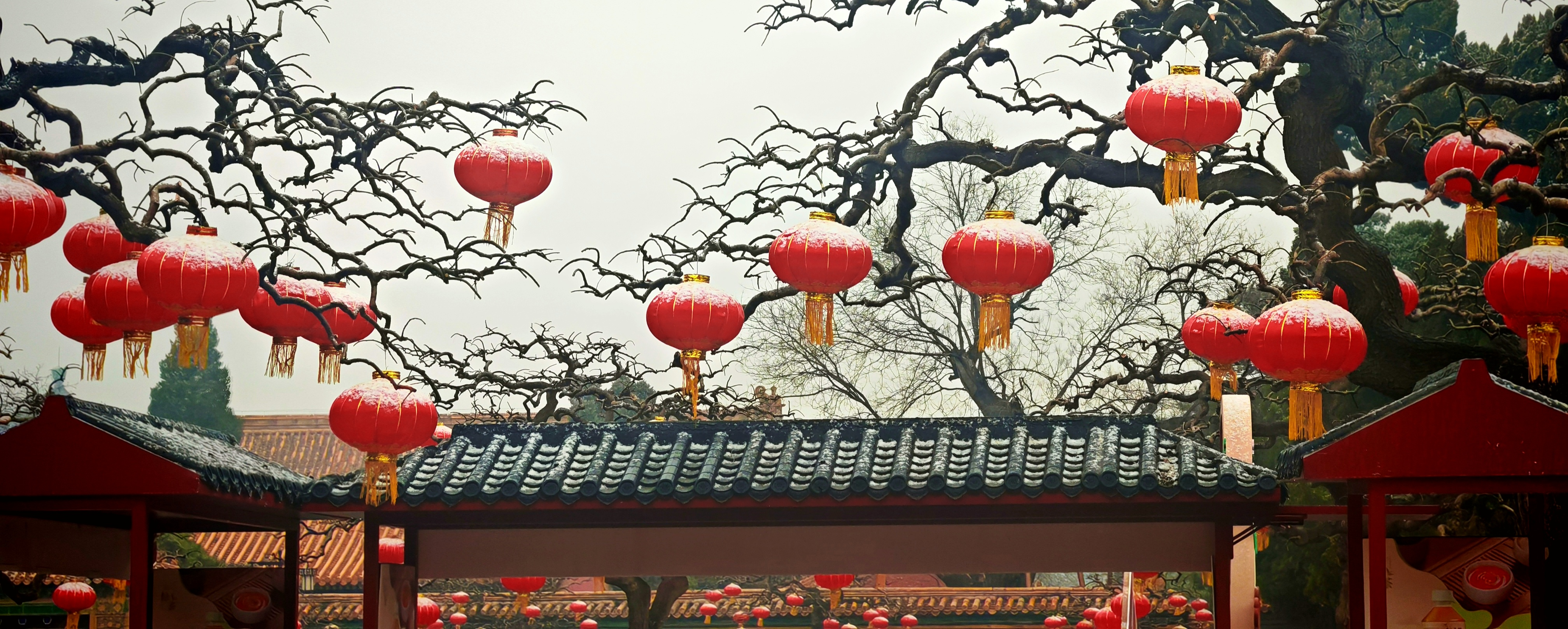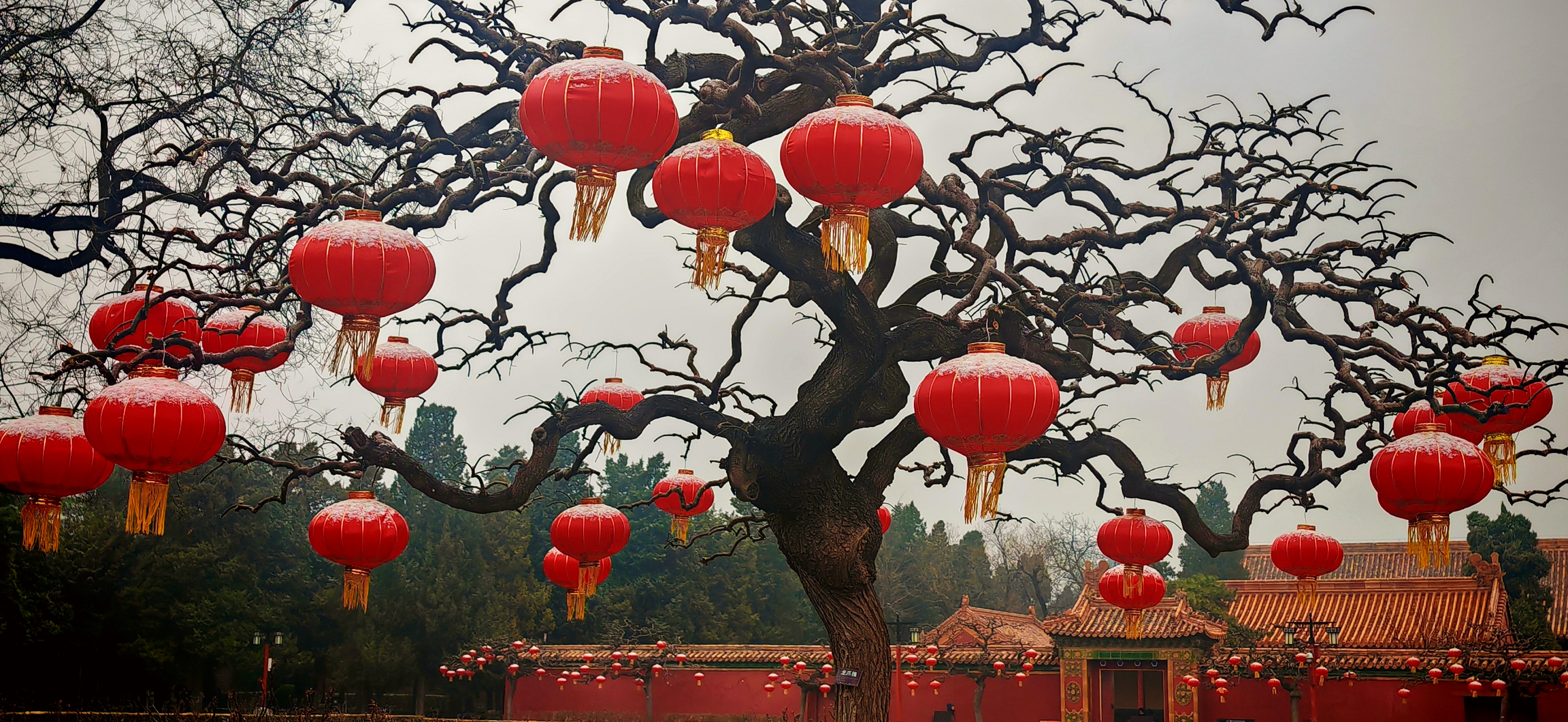 这场小雪,犹如轻盈的笔触,轻轻地落在山上山下高挂的红灯笼上,红灯、白雪,一冷一暖两种极致的颜色,让原本喜庆的节日装饰,平添了几分清冽而高洁的诗意。