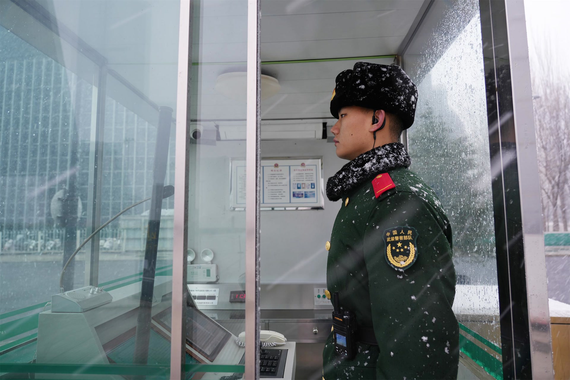 在各环京检查站,官兵们顶风冒雪,认真履职,细致排查安全隐患,用坚守守护首都门户安全,即便风雪打湿衣帽、冻僵双手,也始终保持挺拔姿态、严谨作风。