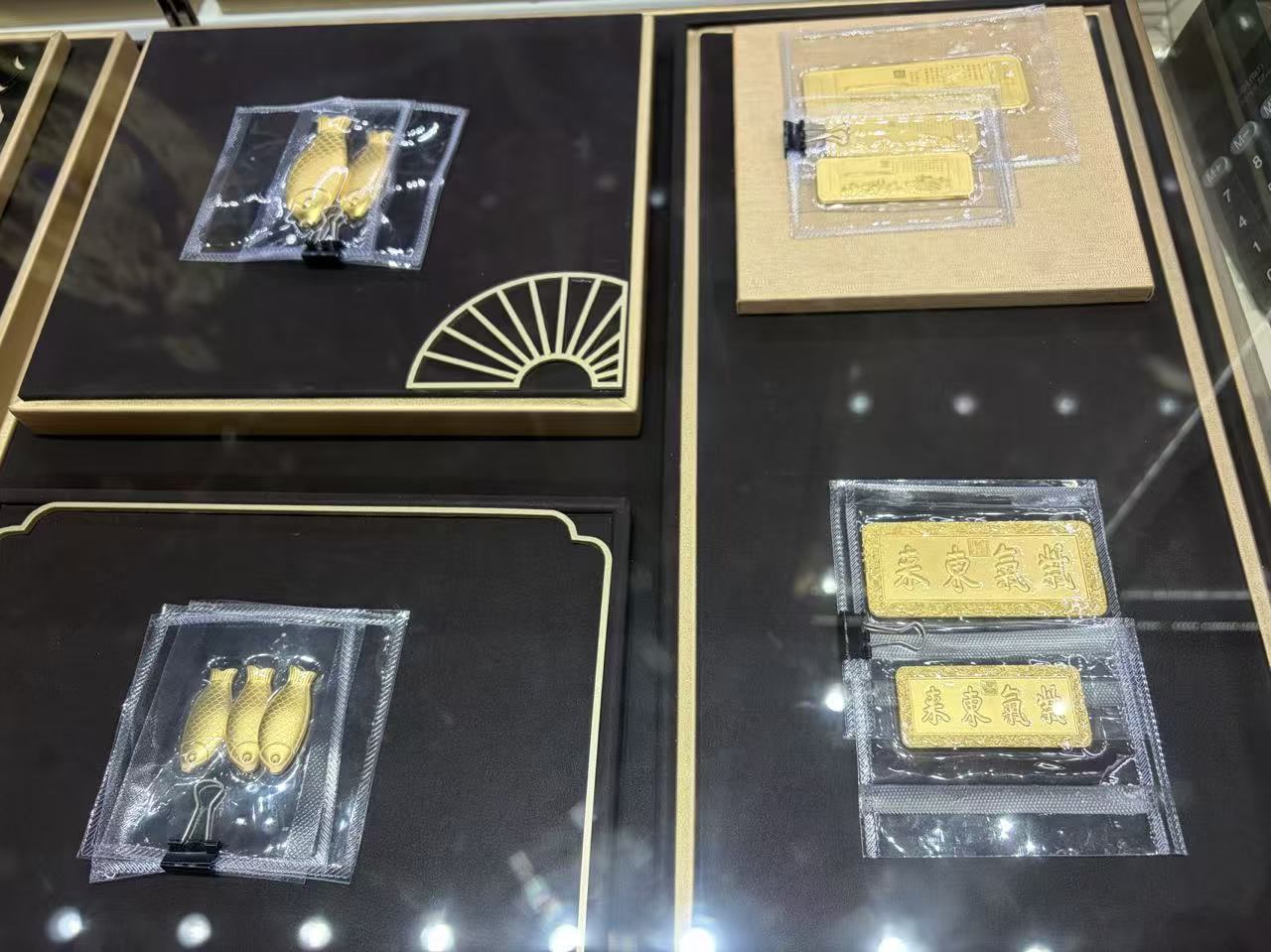 同样是在该商场的中国黄金门店,店员表示,投资金条年前就断货了,目前只有工艺金条在售,每克价格是上海黄金交易所交易金价加200元。柜台里,各种造型的金条琳琅满目,有小黄鱼,有“紫气东来”牌匾,还有福字牌。“这些都是和各大博物馆的文创联名款,比如这个小黄鱼,灵感来自上海博物馆的新石器良渚玉鱼,特别受欢迎,10克规格已经断货了。”