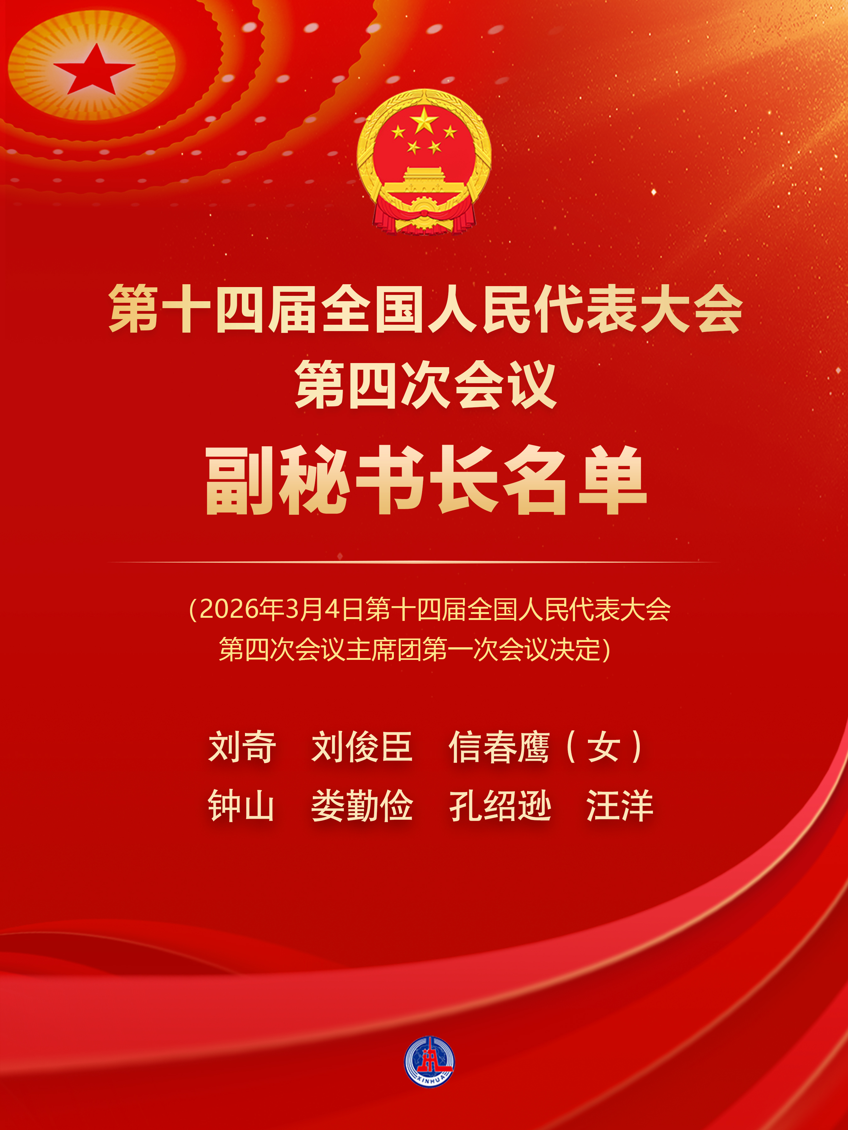 第十四届全国人民代表大会第四次会议副秘书长名单