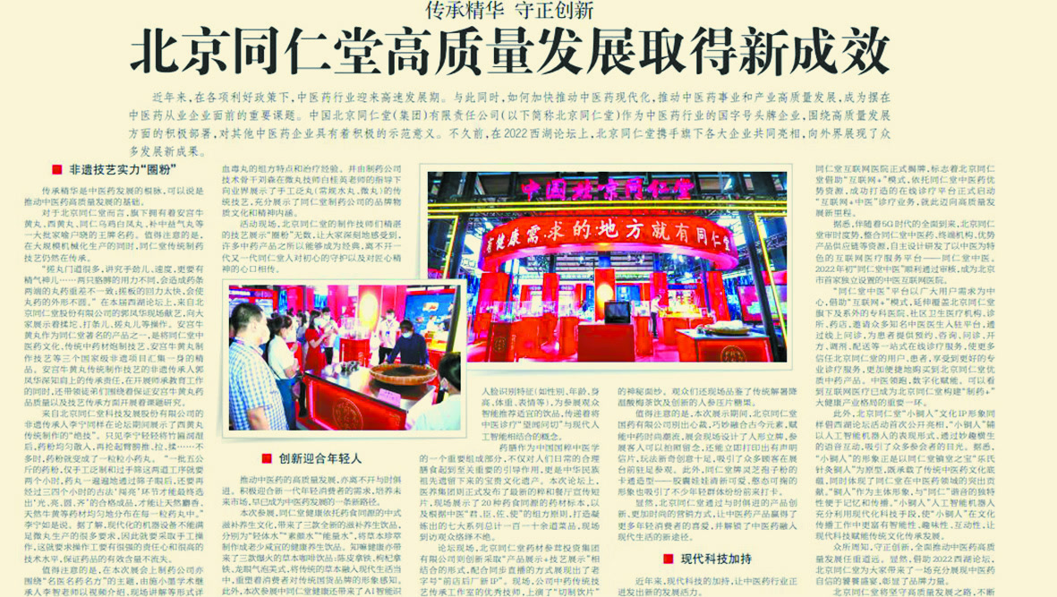 此外,她还登上“一带一路”国际合作高峰论坛、世界传统医药大会等国际舞台,向世界展现中国传统制药技艺的严谨与智慧。李宁也因此荣获全国三八红旗手称号。(2022年7月8日《北京日报》8版,《北京同仁堂高质量发展取得新成效》)