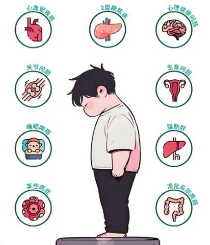 肥胖对人体的危害遍及全身多个系统: