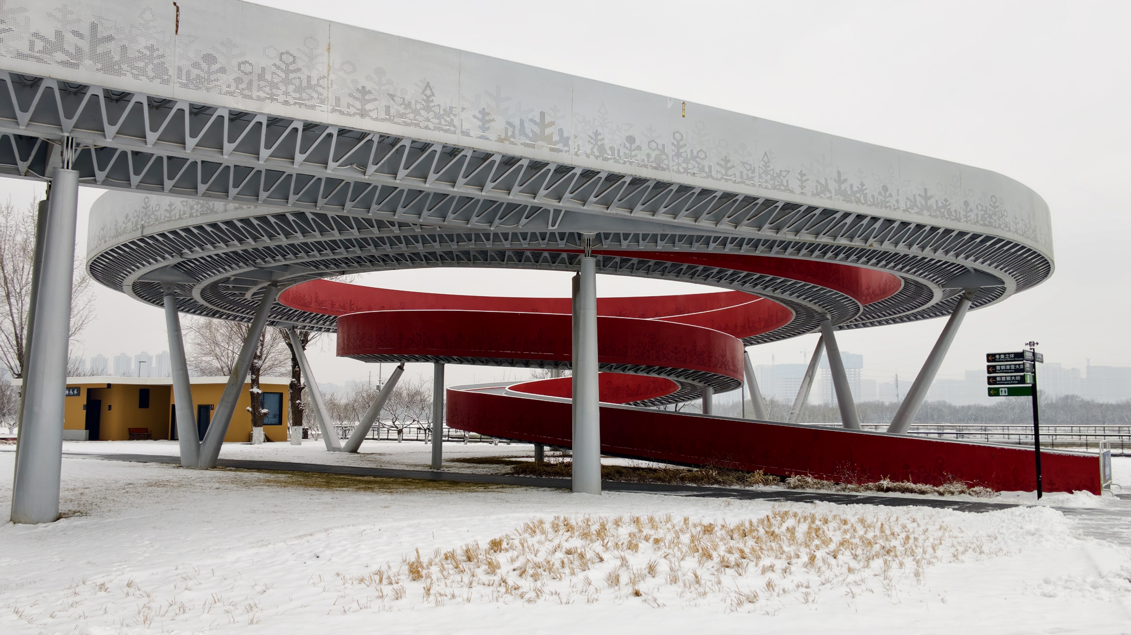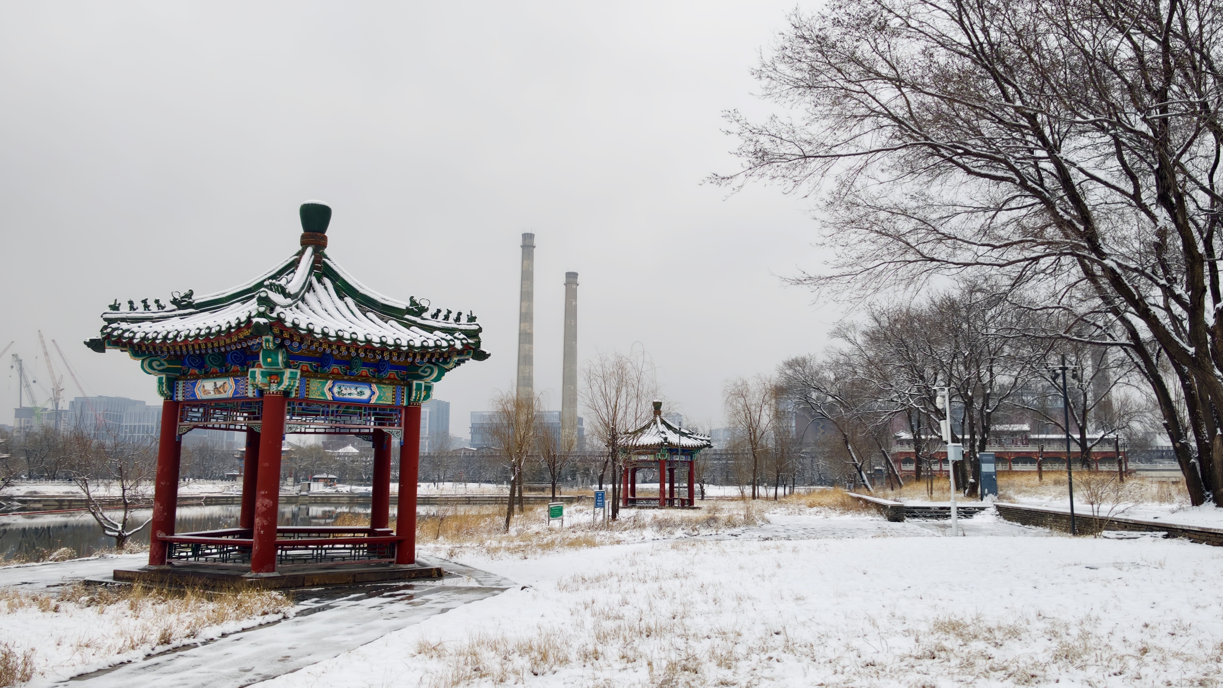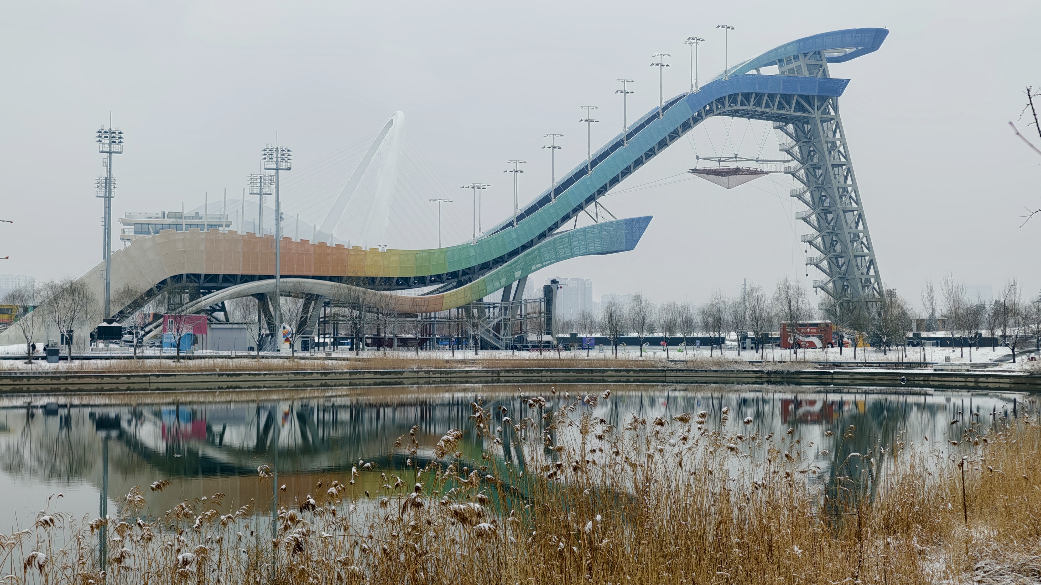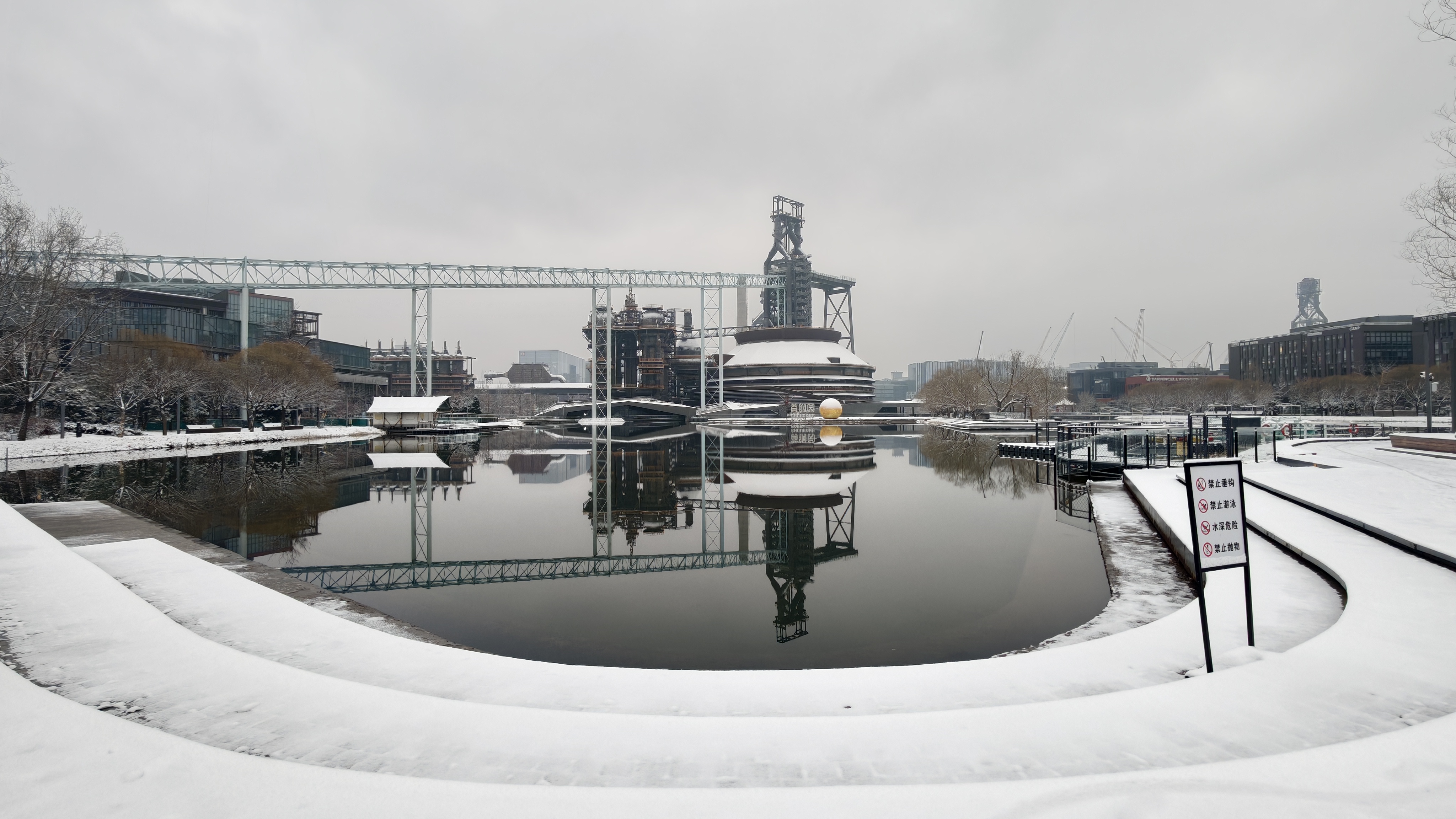 白雪与工业建筑交相辉映,北京首钢园风景独特