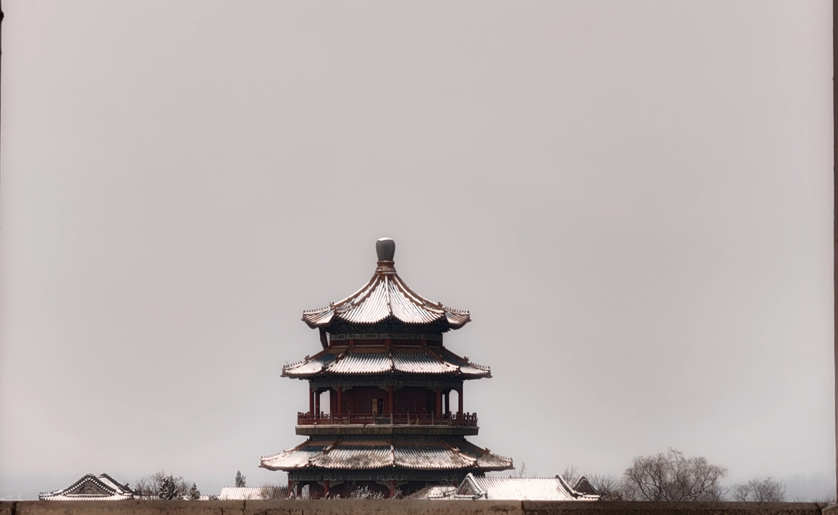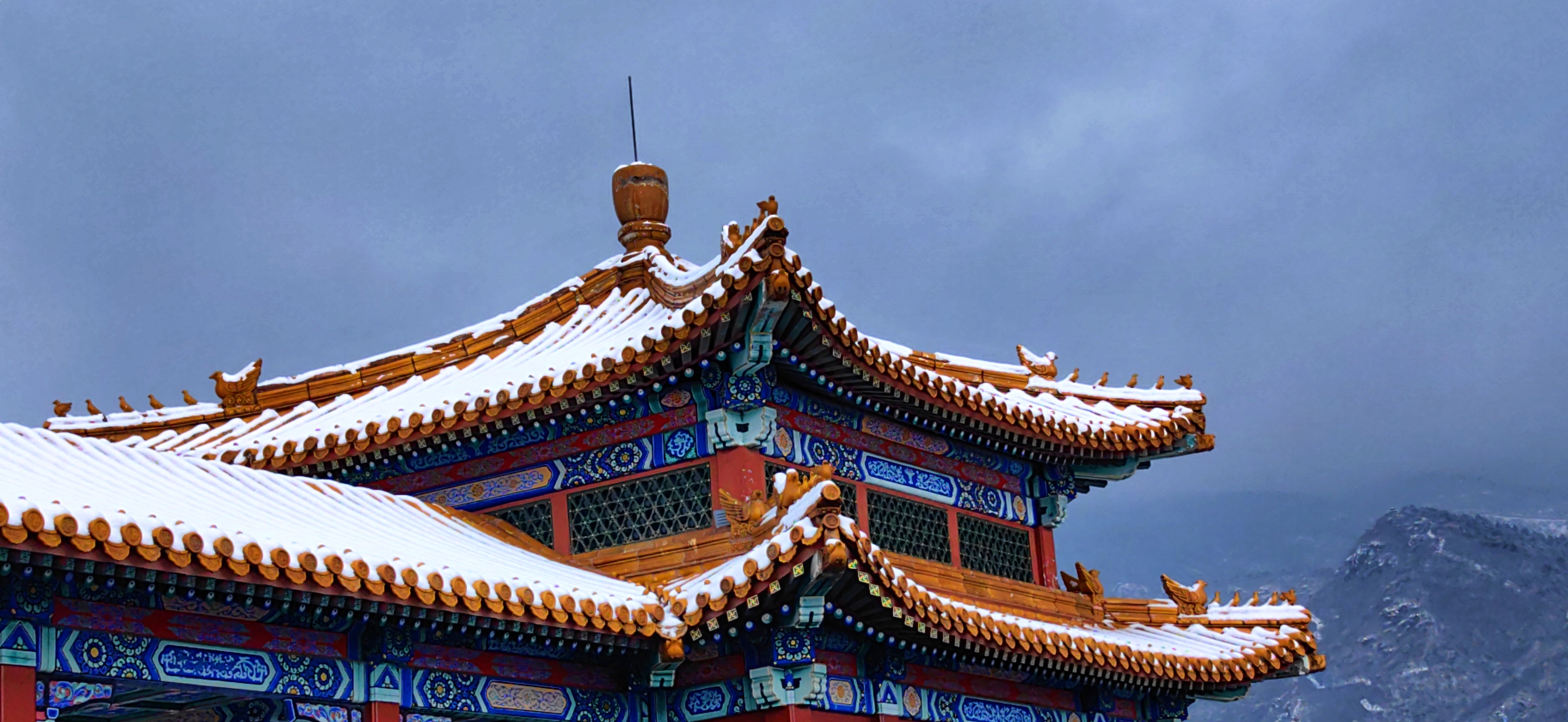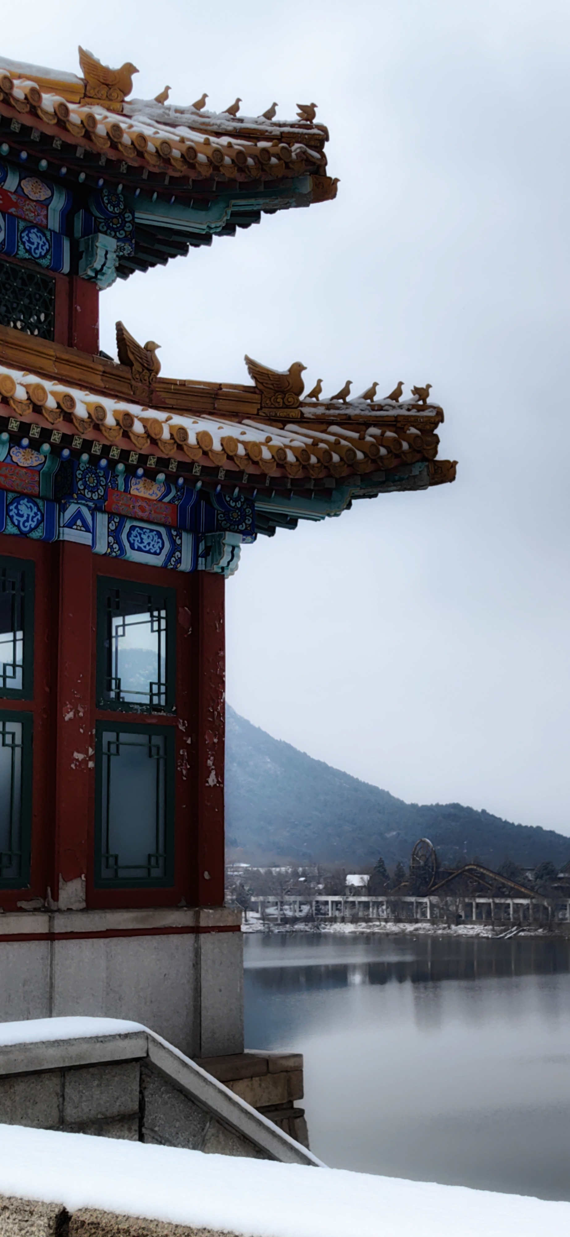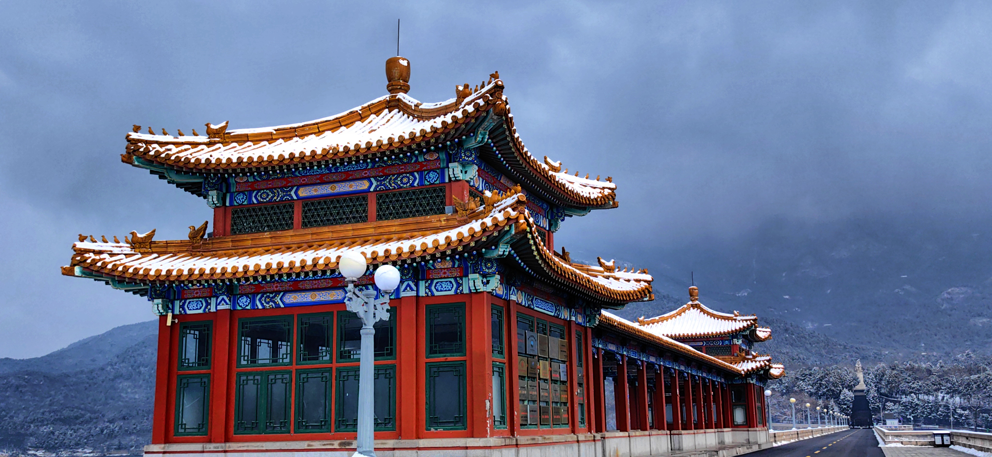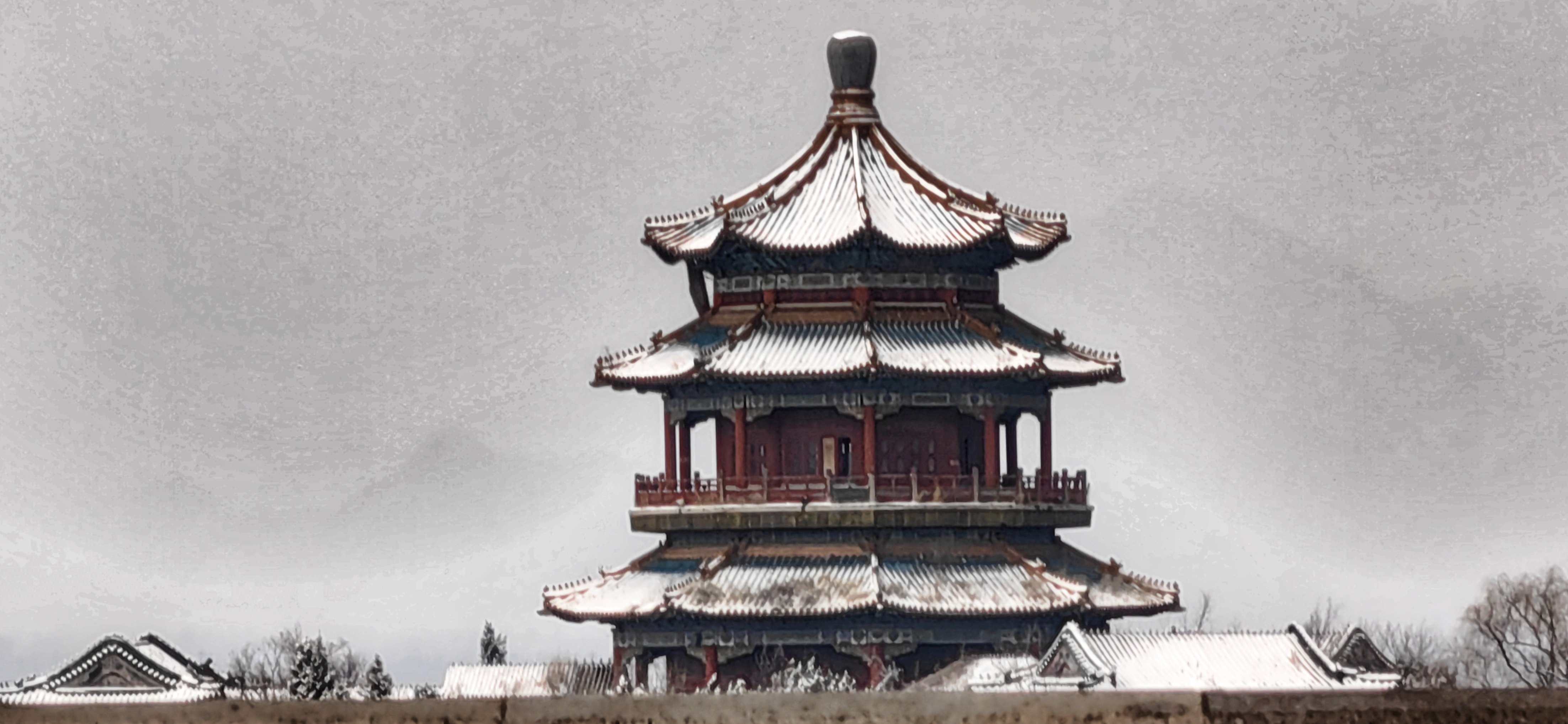 红檐映雪,古意悠然。