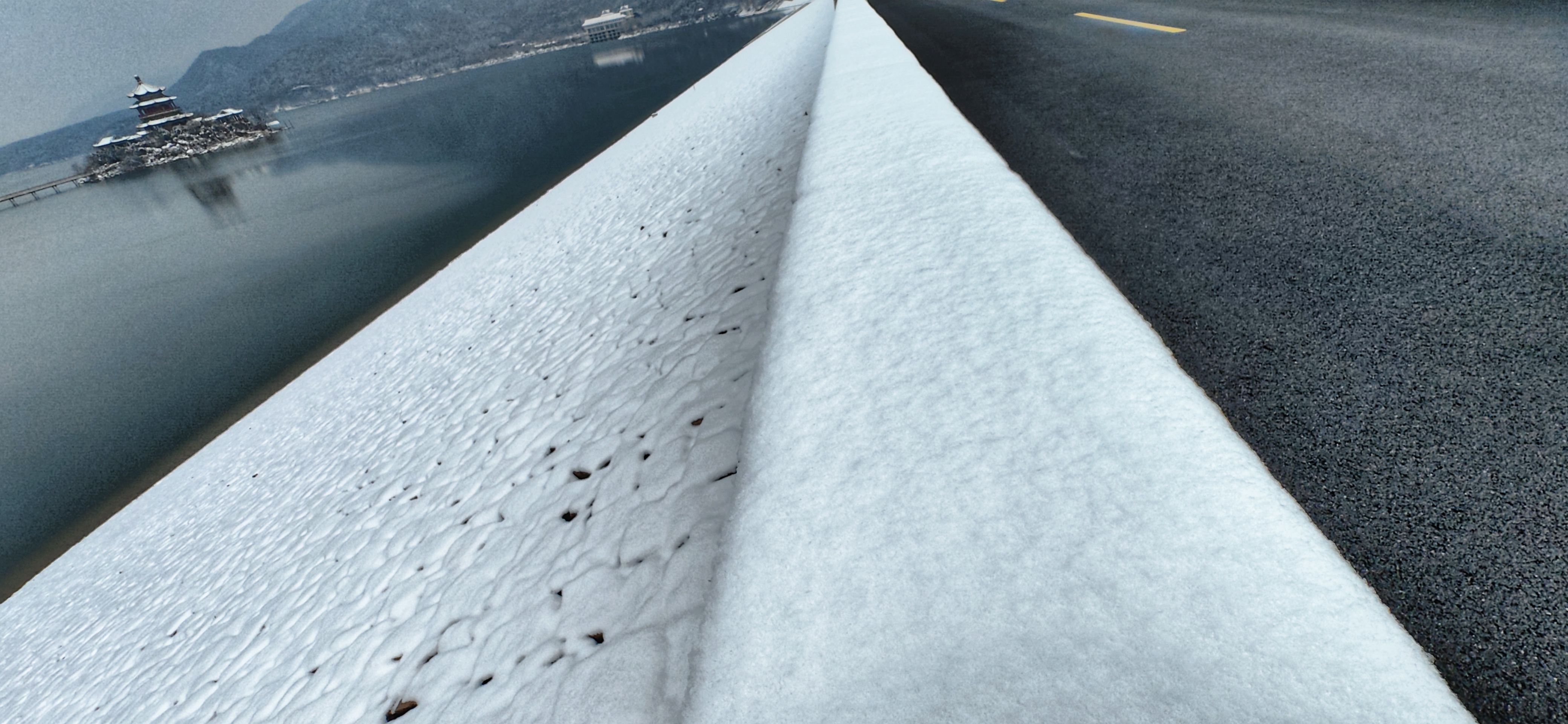 这一方山水,在冬雪的晕染下,既有工程的厚重,又有诗意的清欢。雪落无声,却道尽了岁月的坚守与山河的安然。