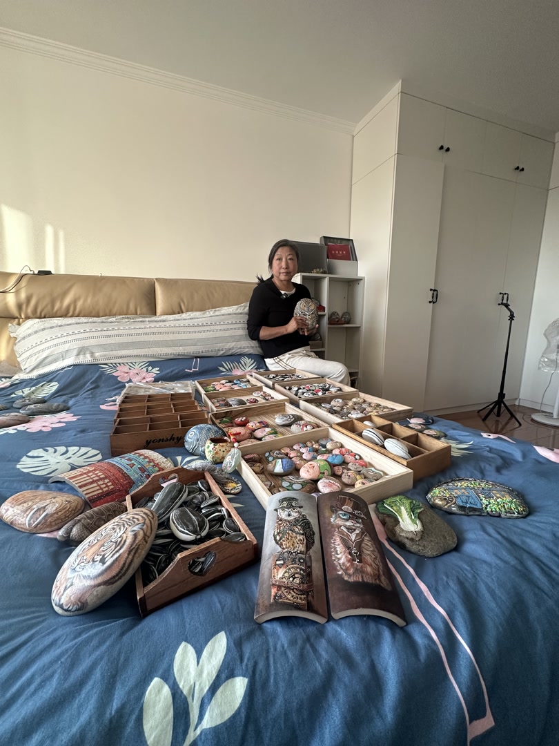 更重要的是,每一件“石头画”都带着郭秀梅亲手绘制的温度,是她与家人、朋友之间情感连接的纽带。经常有朋友向她求画,她每次都会精心构思、悉心创作、大方赠送。女儿出国上学后,她就将女儿的照片一笔笔画在石头上,当作生日礼物,传递对女儿的思念和爱意……未来,郭秀梅希望能把这门手艺教授给更多的人,让更多人感受石头画的魅力,体会这份创作背后的心意。