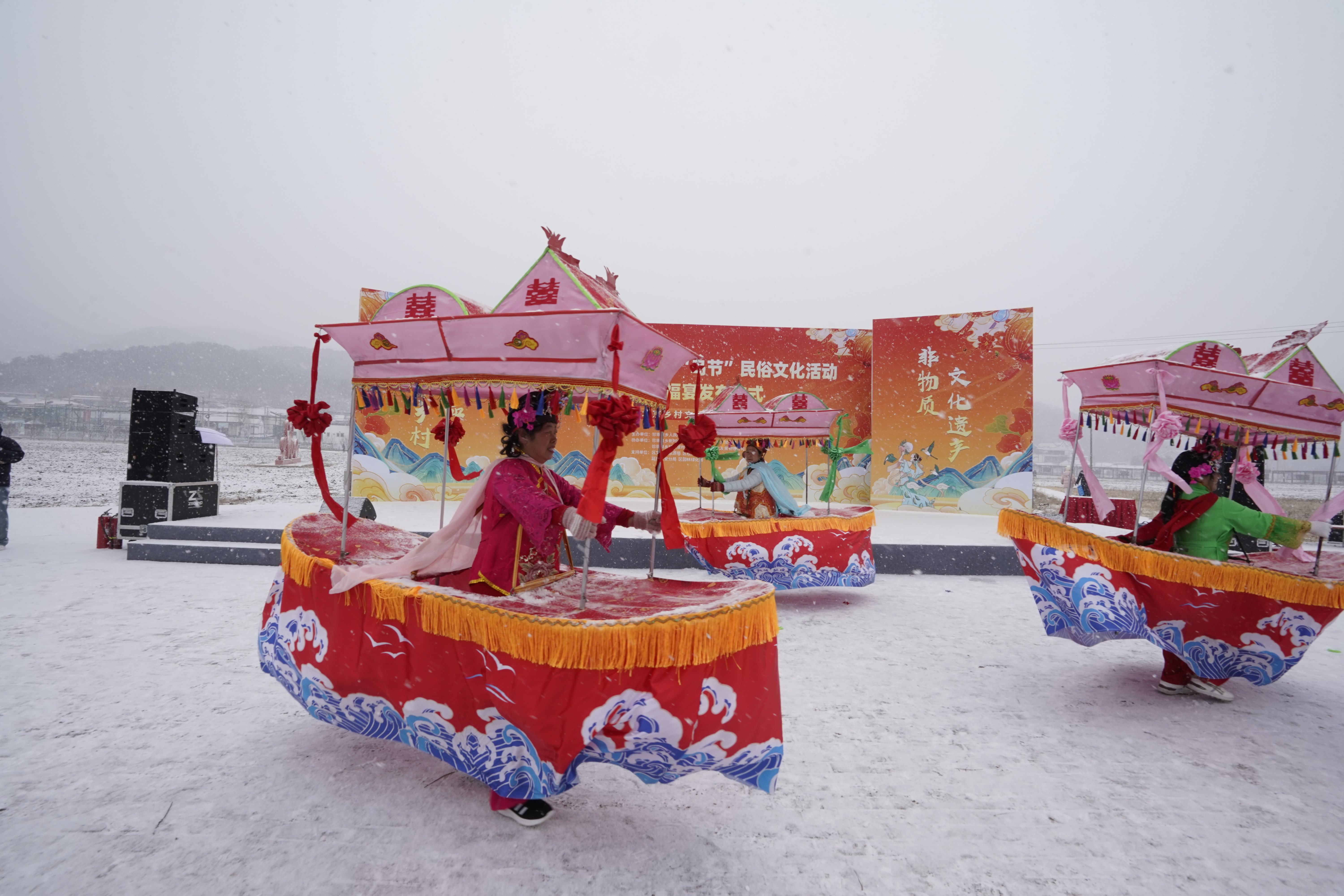 3月4日,农历正月十六,延庆区珍珠泉乡迎来降雪,第十八届“鸟节”民俗文化活动暨布谷福宴发布仪式在延庆区珍珠泉村珠泉喷玉广场热闹启幕。400余名村民、游客齐聚青山秀水间,赏民俗、行祈福、品福宴、逛大集,在绵绵春雪中祈愿新岁风调雨顺、五谷丰登。