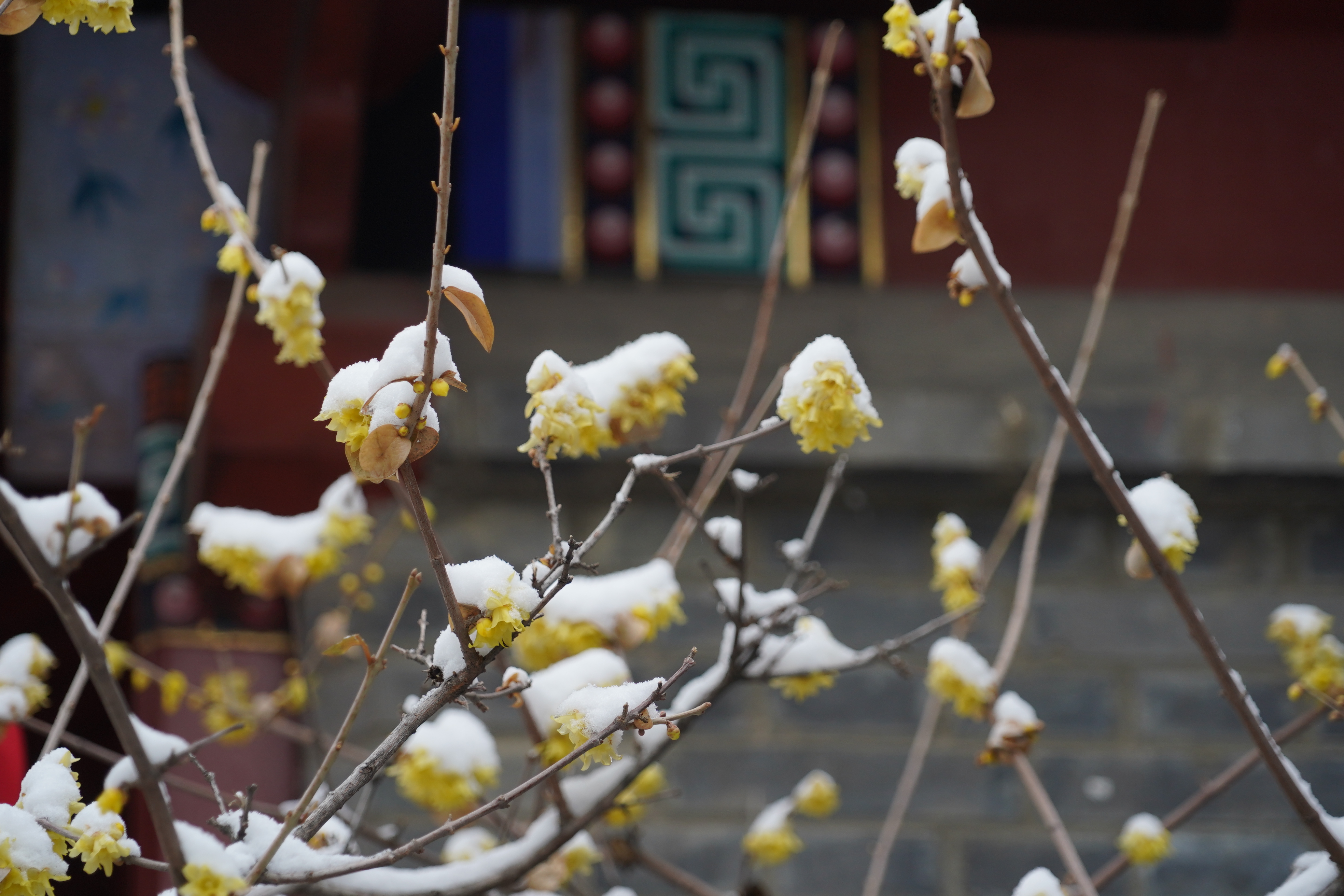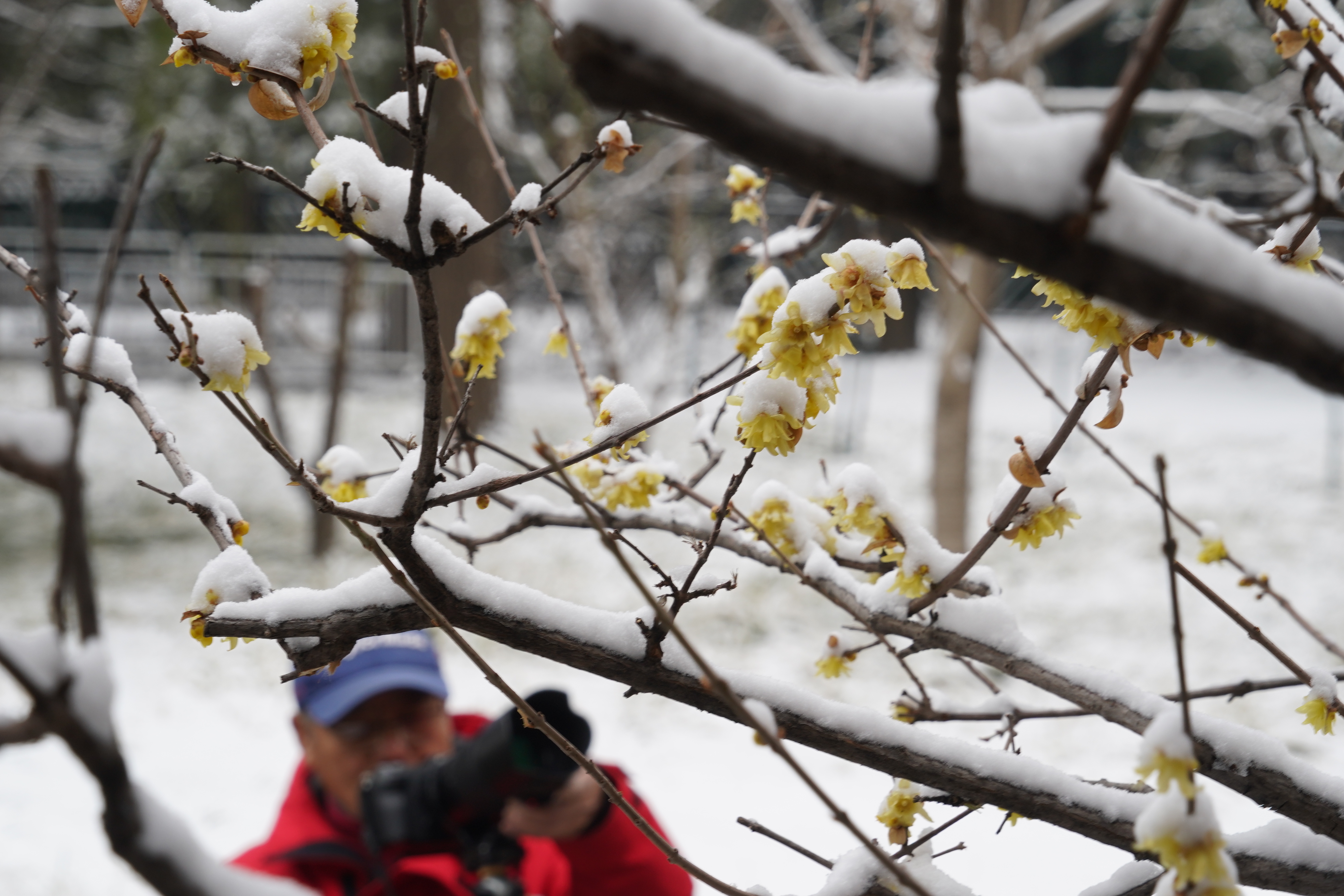 这几日,景山公园蜡梅正值盛时。绮望楼东侧,金黄小花缀满枝,幽香浮动;西区科普园入口处,蜡梅开得正好,为游人引路。科普园内北侧,更多蜡梅花苞渐次舒展,芬芳可期。初绽蜡梅被薄雪轻轻覆盖,红墙映雪,花枝低垂,别样风情。