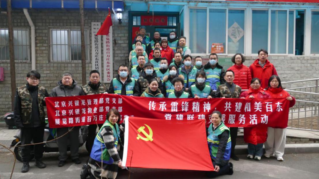 在第63个“学雷锋纪念日”来临之际,为深入弘扬“奉献、友爱、互助、进步”的志愿精神,充分发挥基层党组织战斗堡垒作用和党员先锋模范作用, 3月4日上午,西城区展览路街道百万庄东社区党委联合兴银龙管理部党支部、兴银龙物业党支部,开展“传承雷锋精神,共建和美百东”党建联建学雷锋主题党日活动,以实际行动践行初心使命,为社区居民办实事、解难题、送温暖。