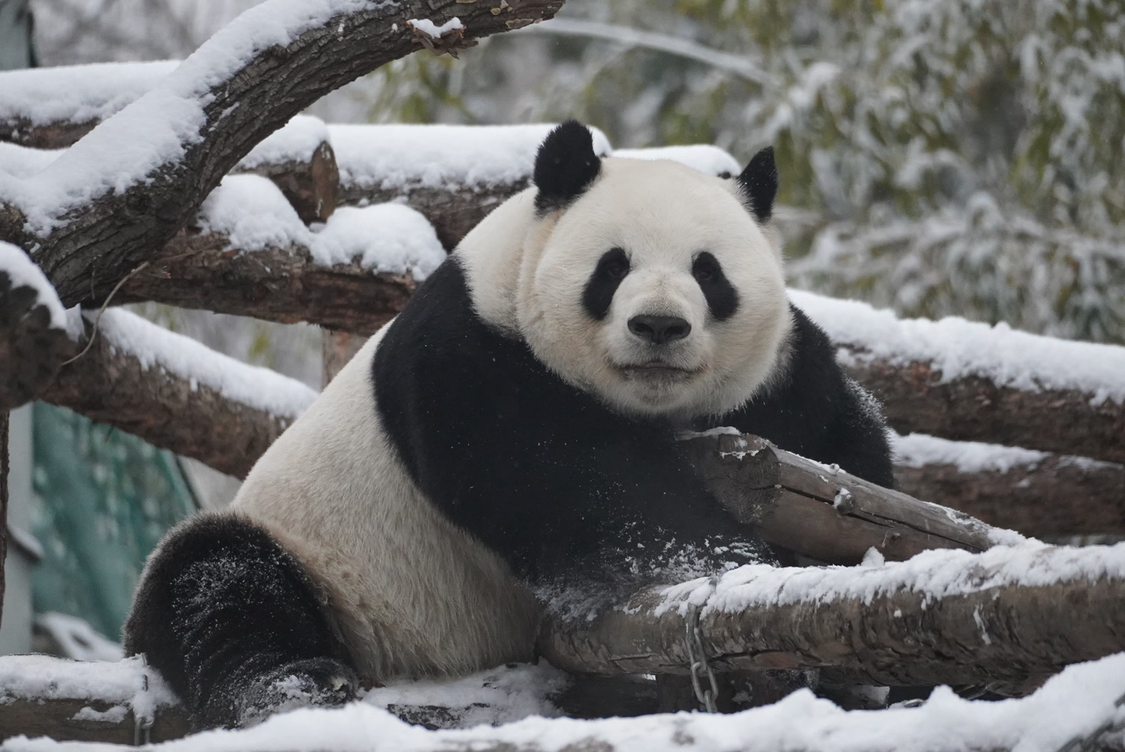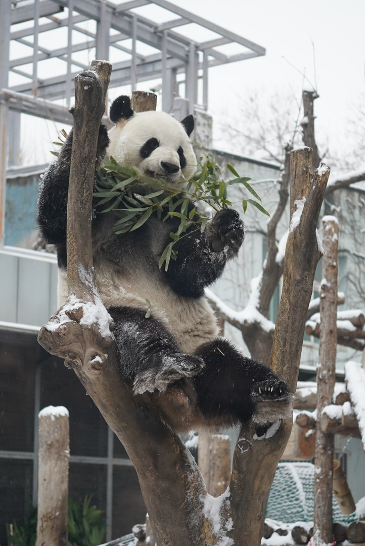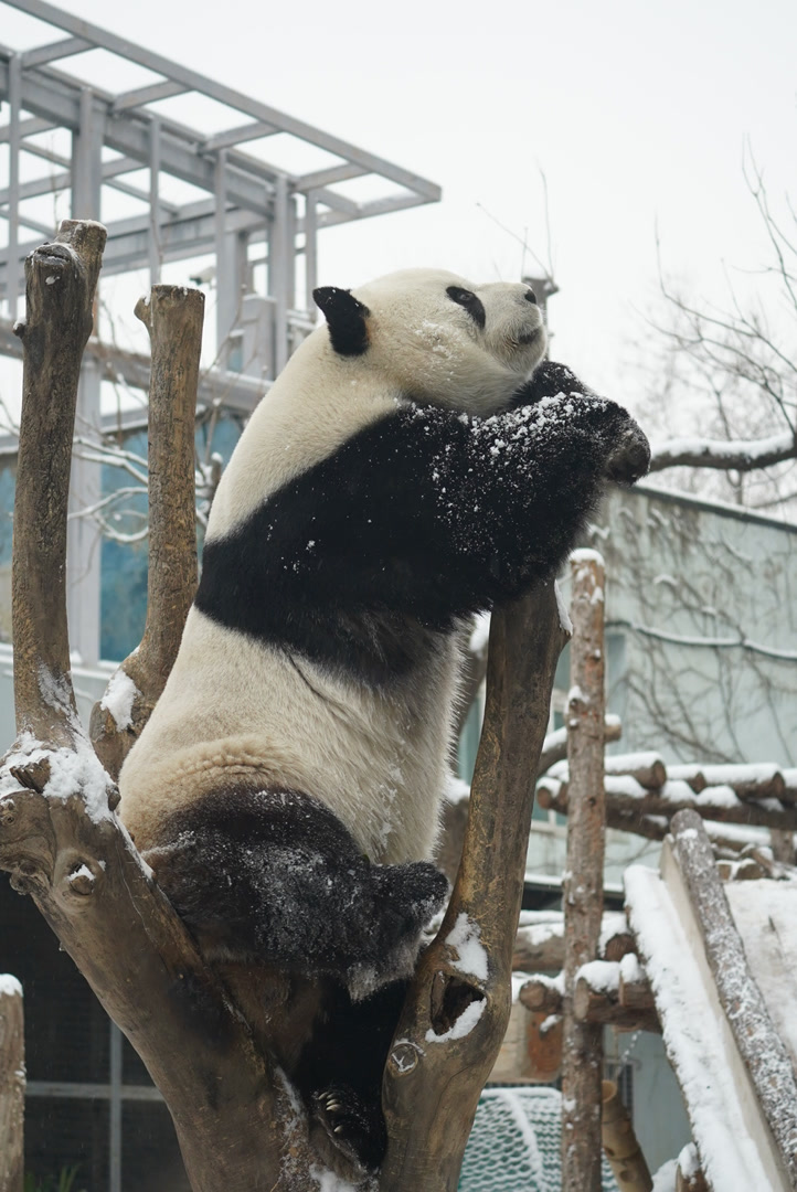 北京下雪,熊猫萌兰化身“糖霜小熊”!萌化游客