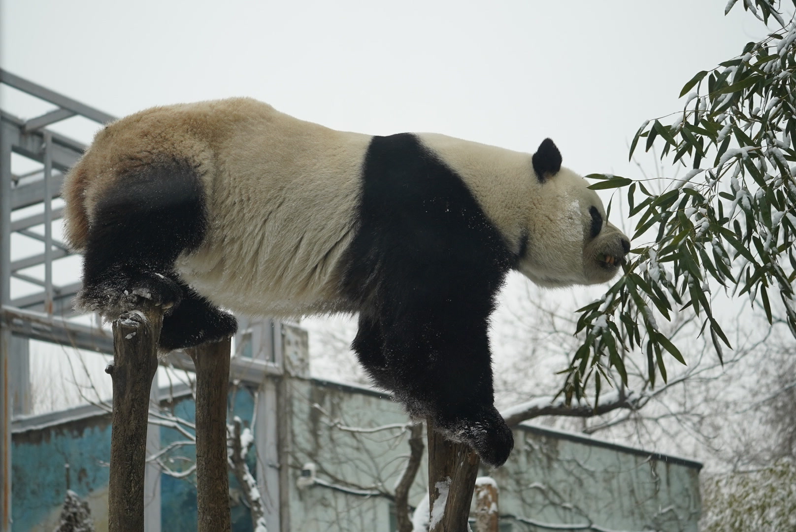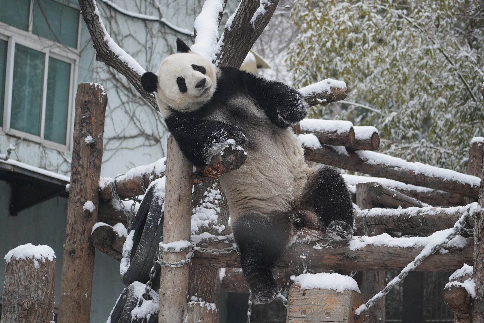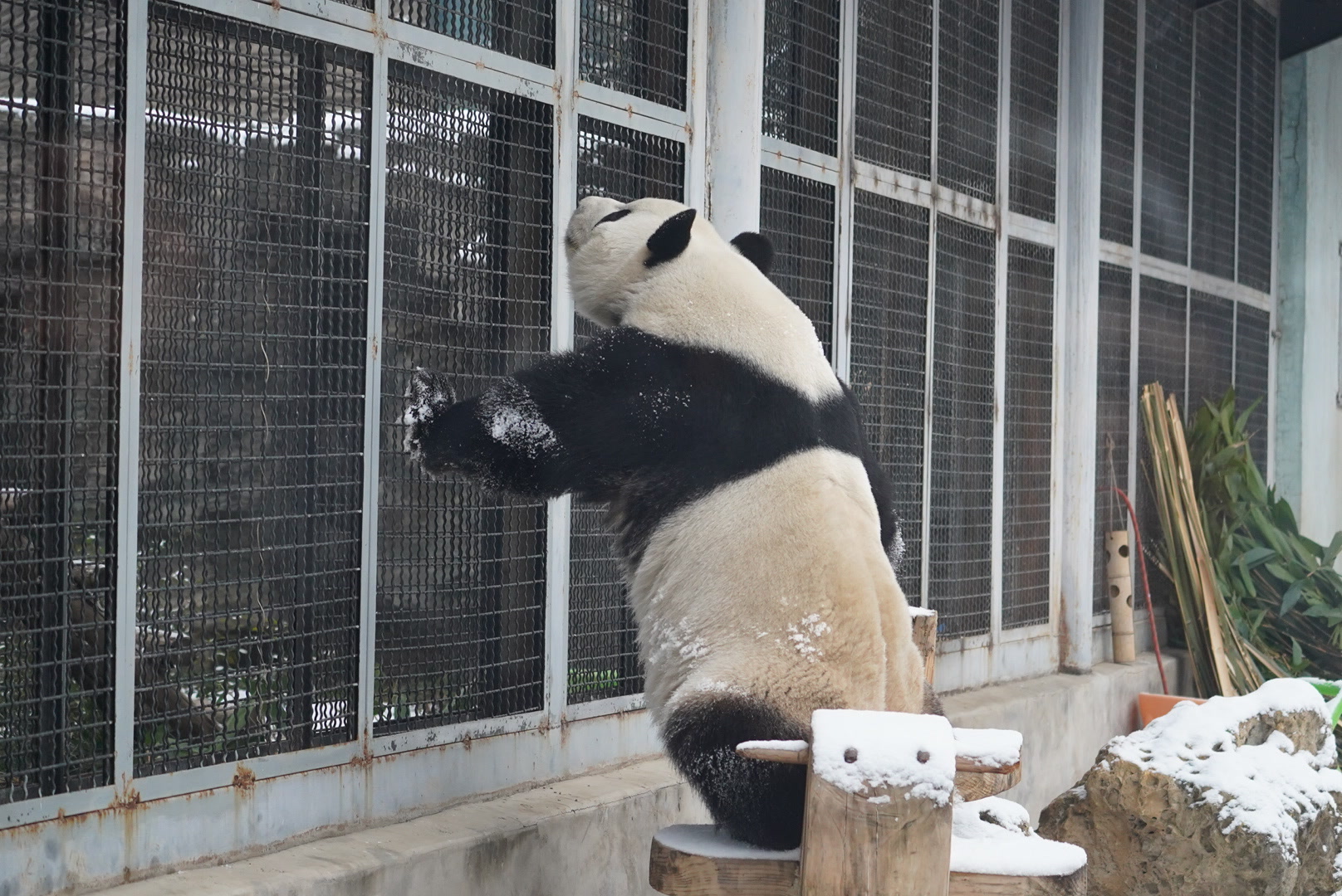 北京下雪,熊猫萌兰化身“糖霜小熊”!萌化游客
