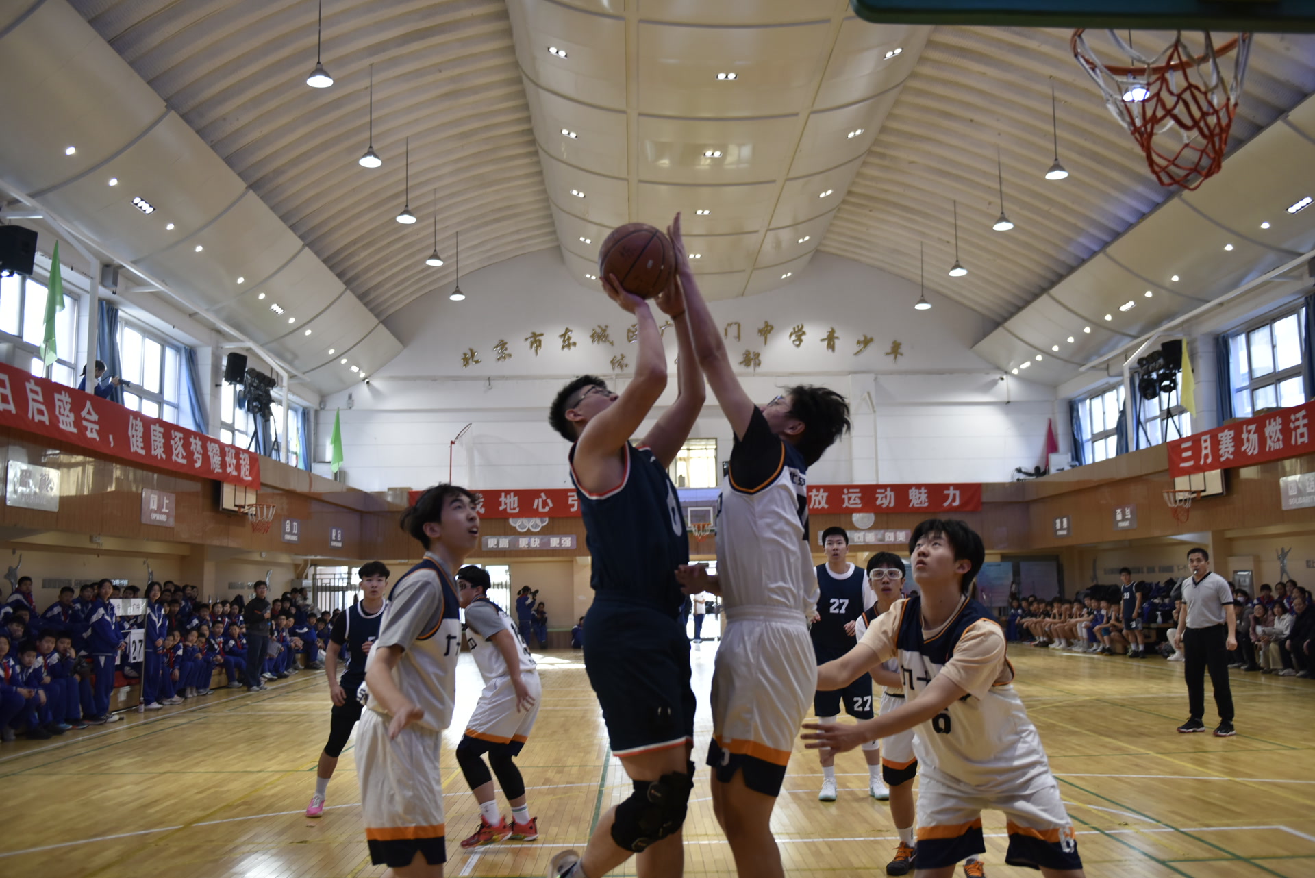 “加油!加油!”近日,北京市广渠门中学教育集团校际篮球友谊赛火热开赛,广渠门中学代表队与北京市第九十六中学代表队同台竞技,拉开了新学期“班超”联赛的序幕。“今年,我们的‘班超’项目更丰富,在原有三大球班级赛基础上,新增乒乓球、羽毛球项目挑战赛。5个项目预计进行500多场比赛。”广中“班超”联赛负责人说,新学期的“班超”组队更灵活,挑战赛打破班级限制,实行同年级自由组队,促进学生间跨班交流。
