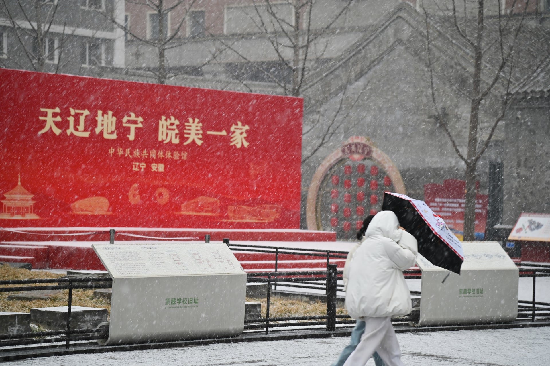 惊蛰遇春雪,红墙映银霜,北京这些红色地标美成了诗