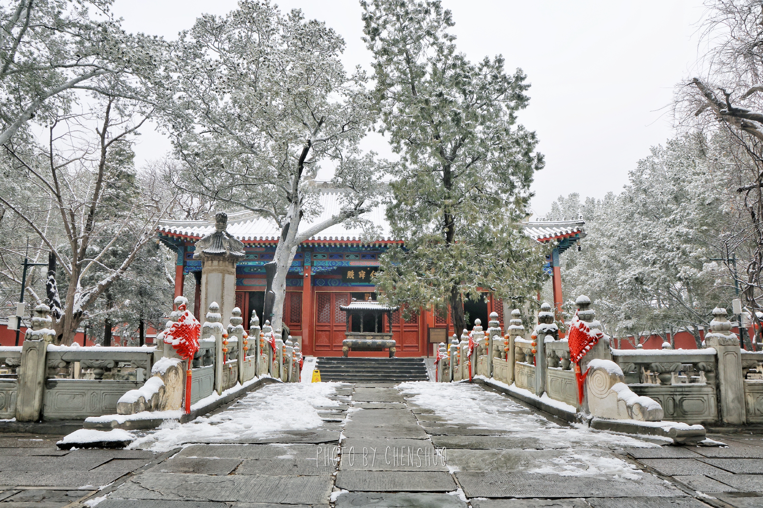 本该万物萌动的惊蛰,却以一场柔雪邂逅千年古寺,冬的清冽与春的温柔在此相拥。雪花轻扬,拂过殿宇廊檐,落在石阶之上,静谧无声。