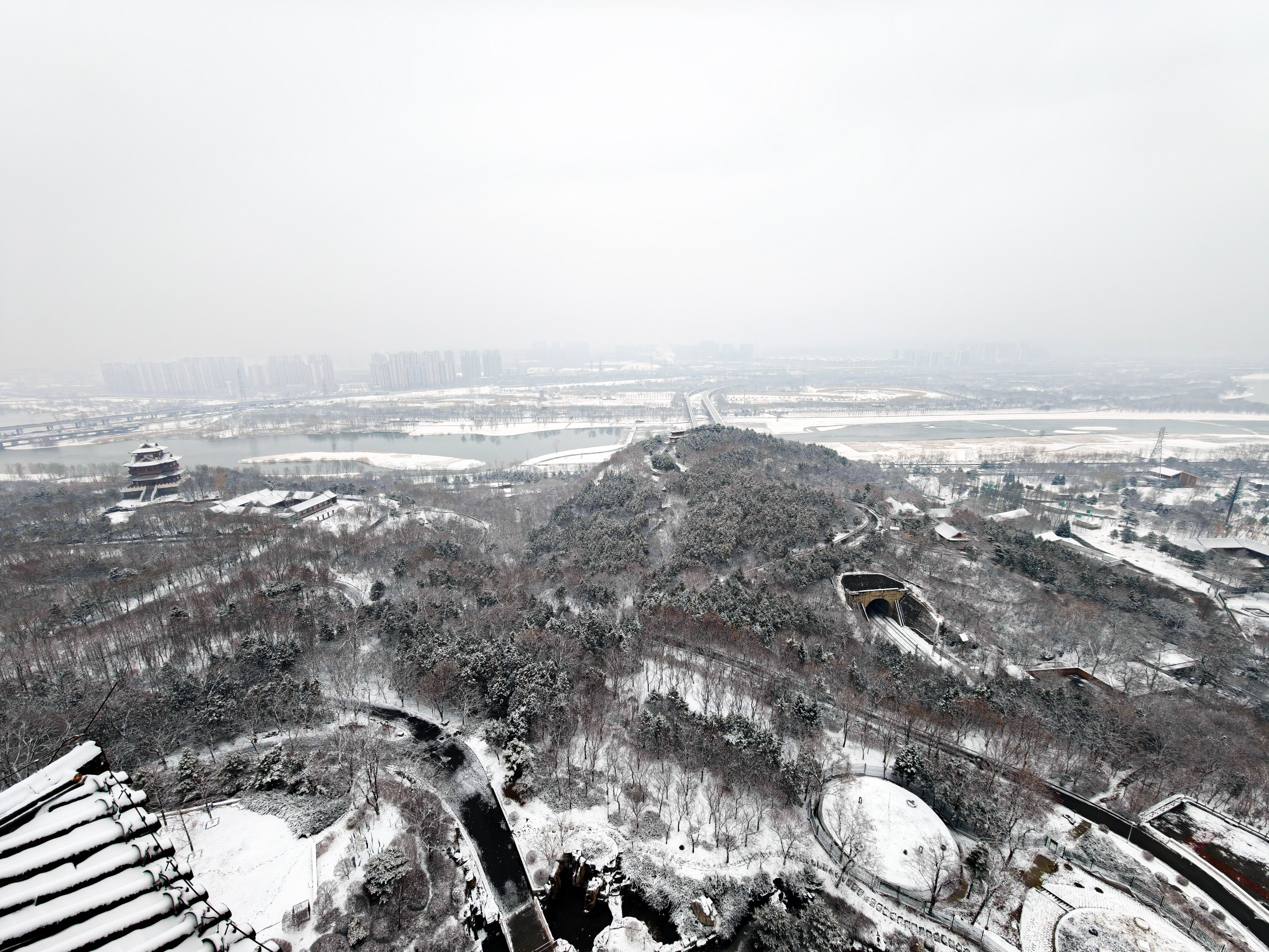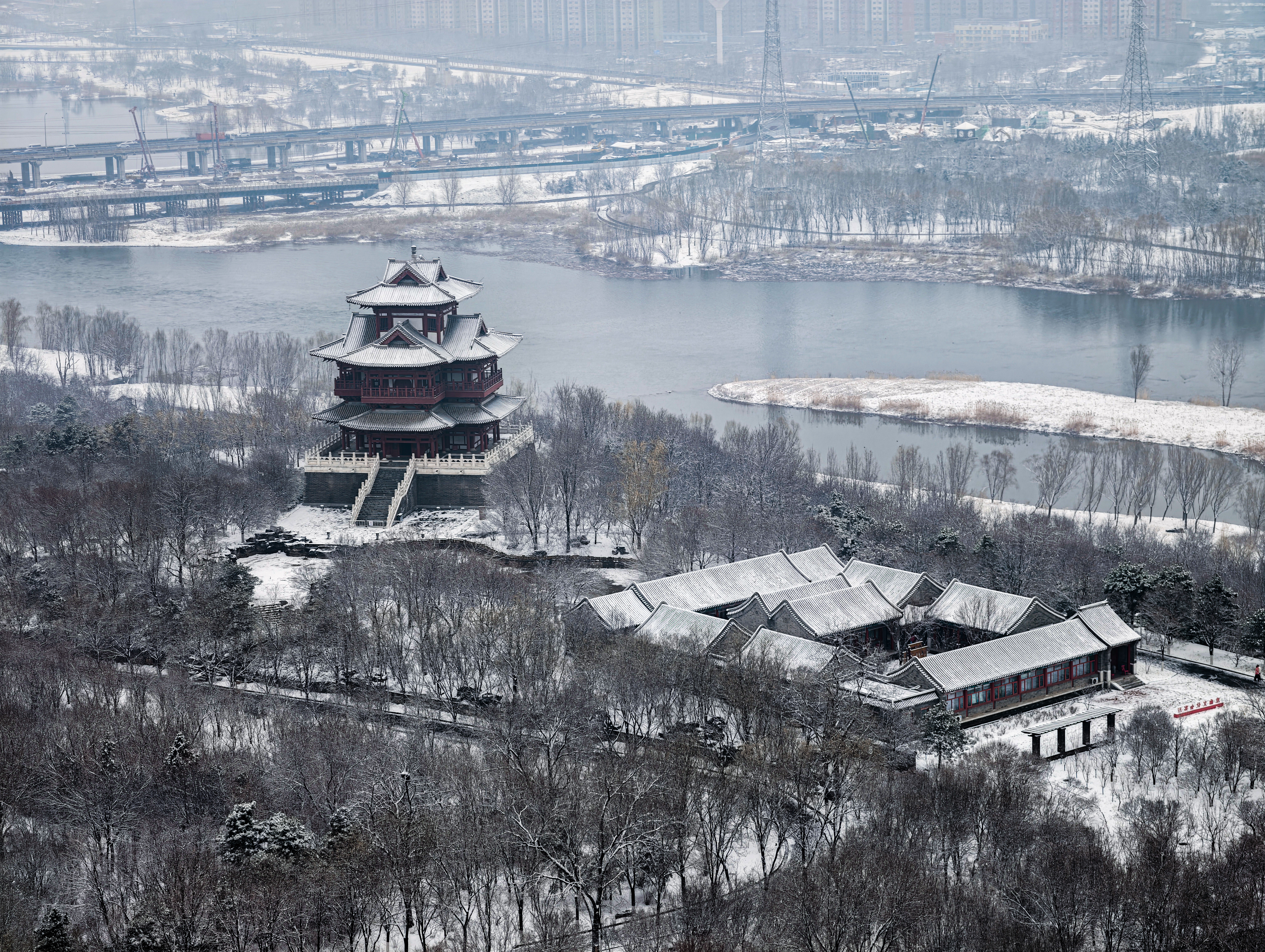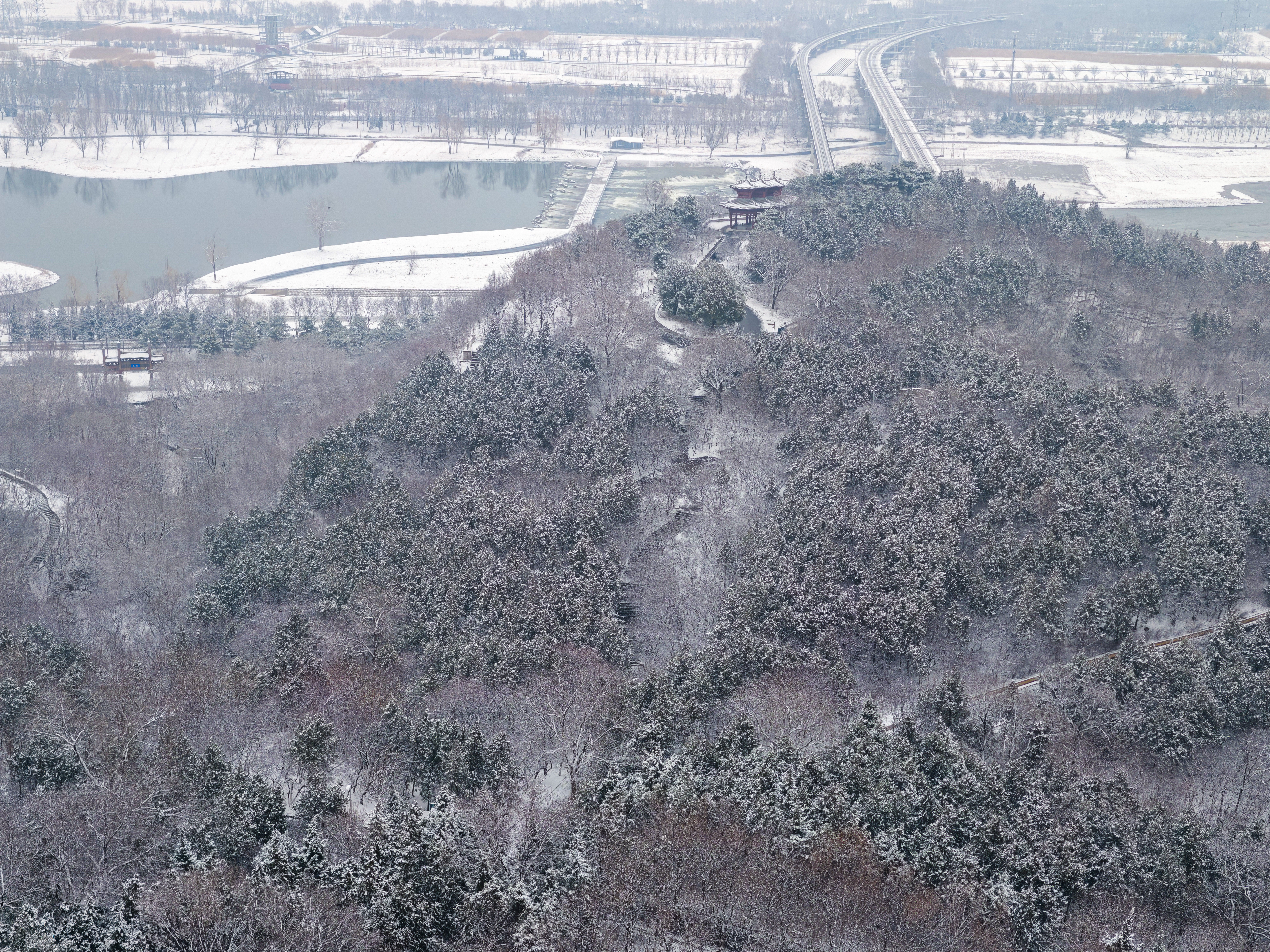 一场春雪过后,北京的“两园一河”呈现出