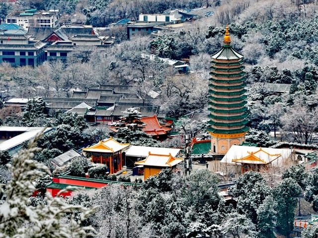 白雪覆红墙,万春亭上望远,中轴线素裹,京城尽在画中。详情>>