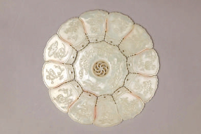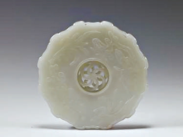 这套玉佩以整块和田白玉雕琢而成,选材考究,玉质洁白无瑕、温润细腻。一套十三件,聚可成组,分可独立成意,设计独具匠心,体现了清代玉雕工艺的高超水平。璧形花蕊的中心以灵活转心工艺雕琢,六个圆环相互套叠,可以转动,是镂雕工艺中的一项绝艺。花蕊一面雕水仙、海棠、万年青、灵芝图案;另一面雕阳文篆书十二音律,分别为黄钟、大吕、泰(太)蔟、夹钟、姑洗、仲吕、蕤宾、林钟、彝(夷)则、南吕、无射、应钟,对应十二件花瓣形月令佩。
