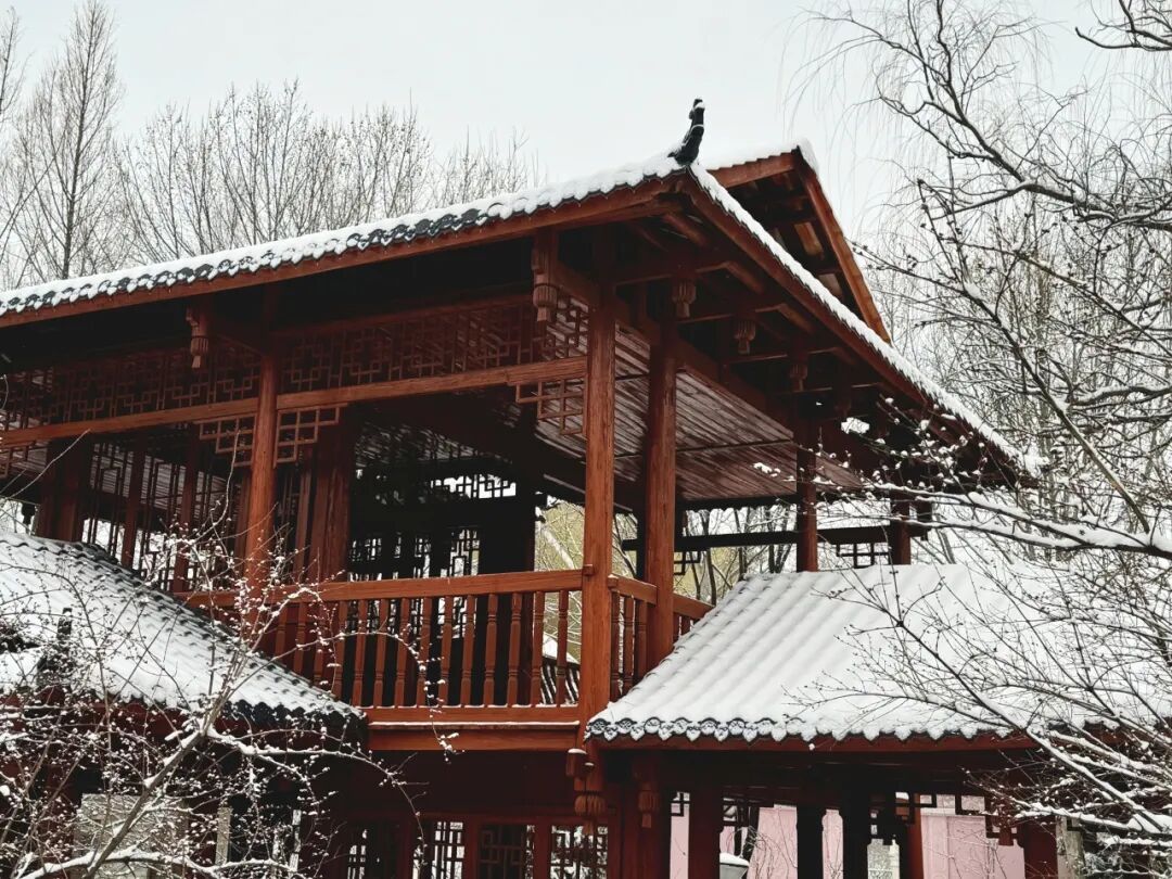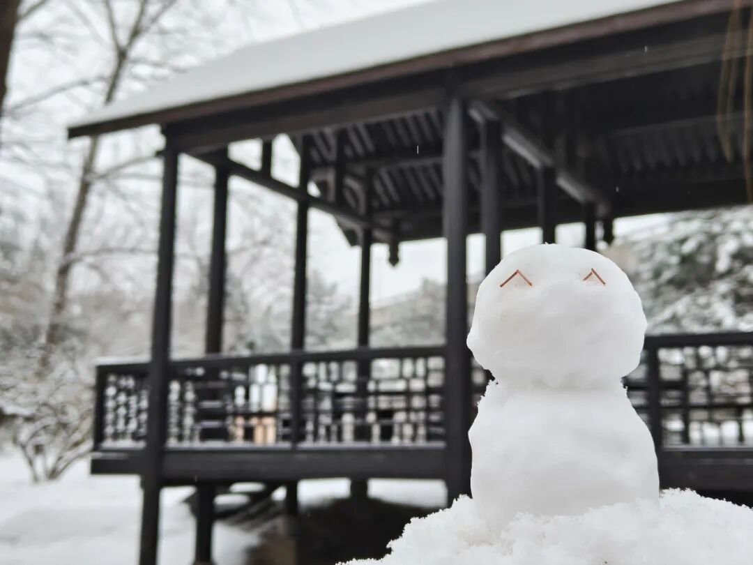 在薄雪映衬下显得静谧而清新