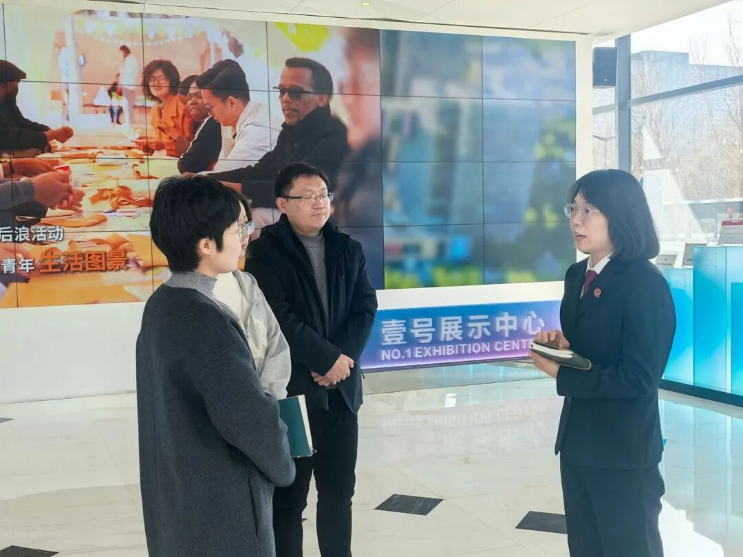 在中关村壹号科技园区,中关村法庭副庭长陈聪慧与园区管理人员进行交流,了解园区企业司法需求,积极推进辖区营商环境优化工作。