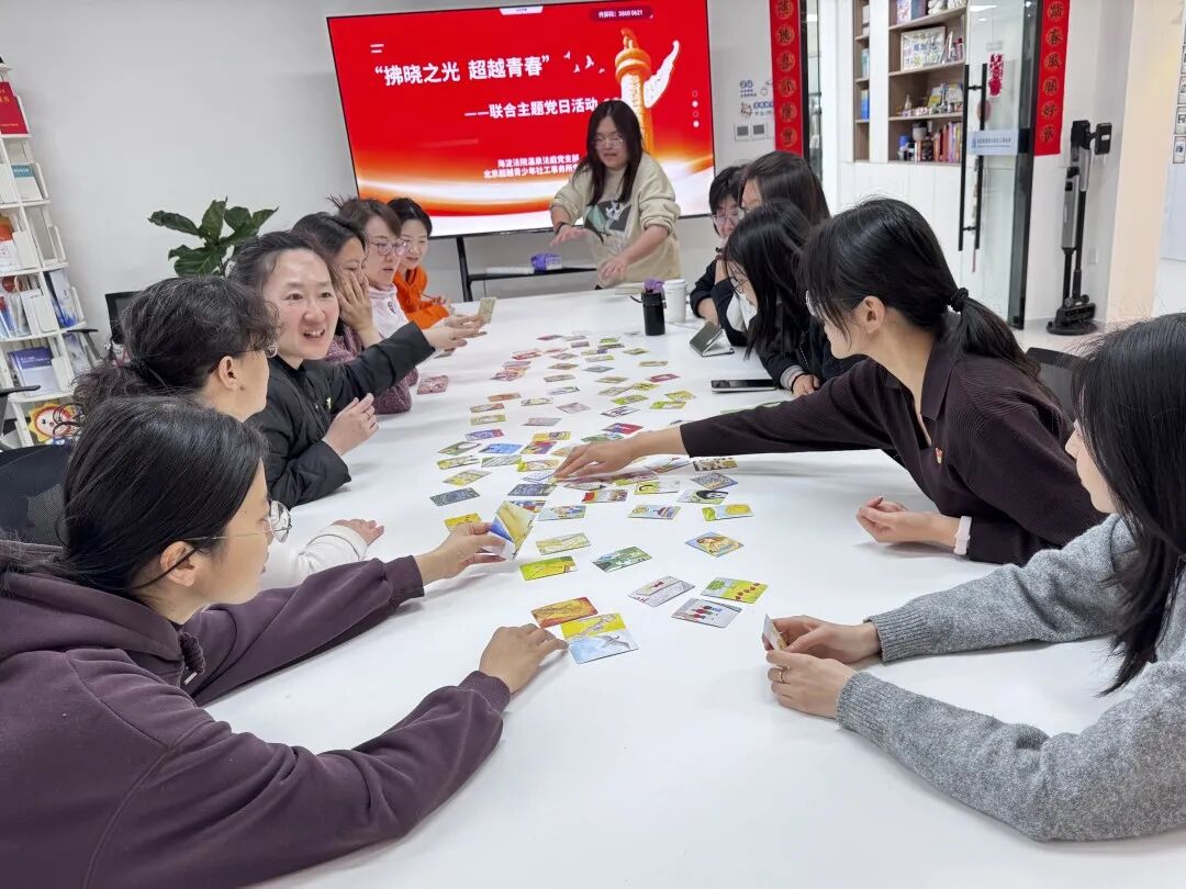 在北京超越青少年社工事务所,温泉法庭党支部开展了“拂晓之光 超越青春”主题党日活动。两个支部的党员干警,在社工的指导下围坐一堂,体验“OH”卡互动,通过卡牌故事接龙、互赠祝福,了解社工与青少年交流的方式,在轻松的气氛中体会打开涉诉未成年人心结的方法,拓展干警与未成年人沟通的路径,用温情与专业守护童心,以实际行动诠释巾帼担当。