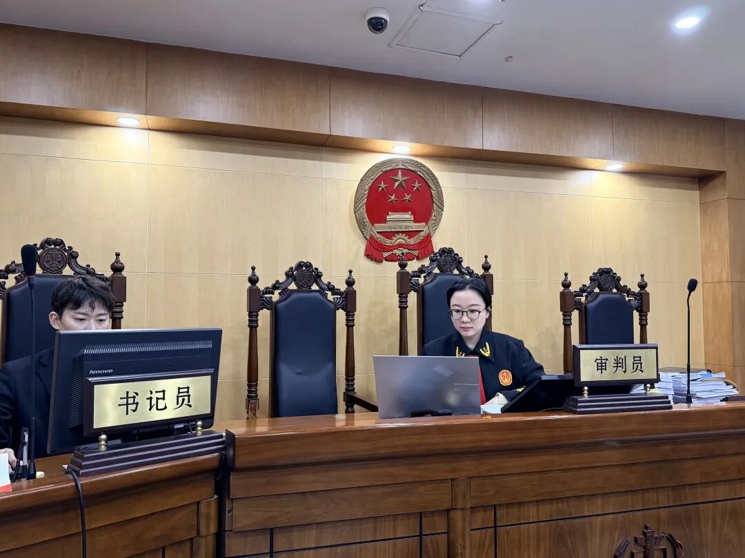 民事审判五庭(知识产权审判庭)法官张筠曼在线上开庭审理一起侵害商标权及不正当竞争纠纷案件。