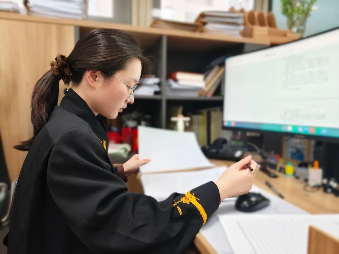 民事审判二庭(劳动争议审判庭)法官甄艺艺正在对当日开庭的案件进行梳理,让司法为民的初心,在实干与坚守中绽放出温暖而坚定的光芒。