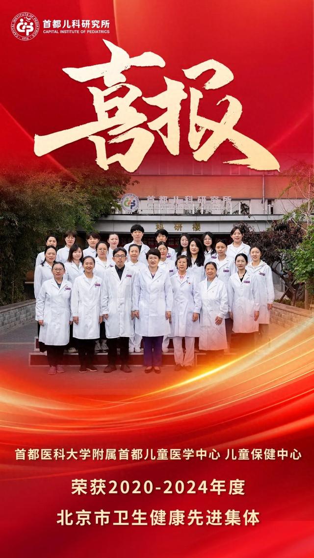 首都医科大学附属首都儿童医学中心儿童保健中心被授予“2020-2024年度北京市卫生健康先进集体”荣誉称号,石琳、王琳、王亚娟、于磊4名同志被授予“2020-2024年度北京市卫生健康先进个人”荣誉称号。