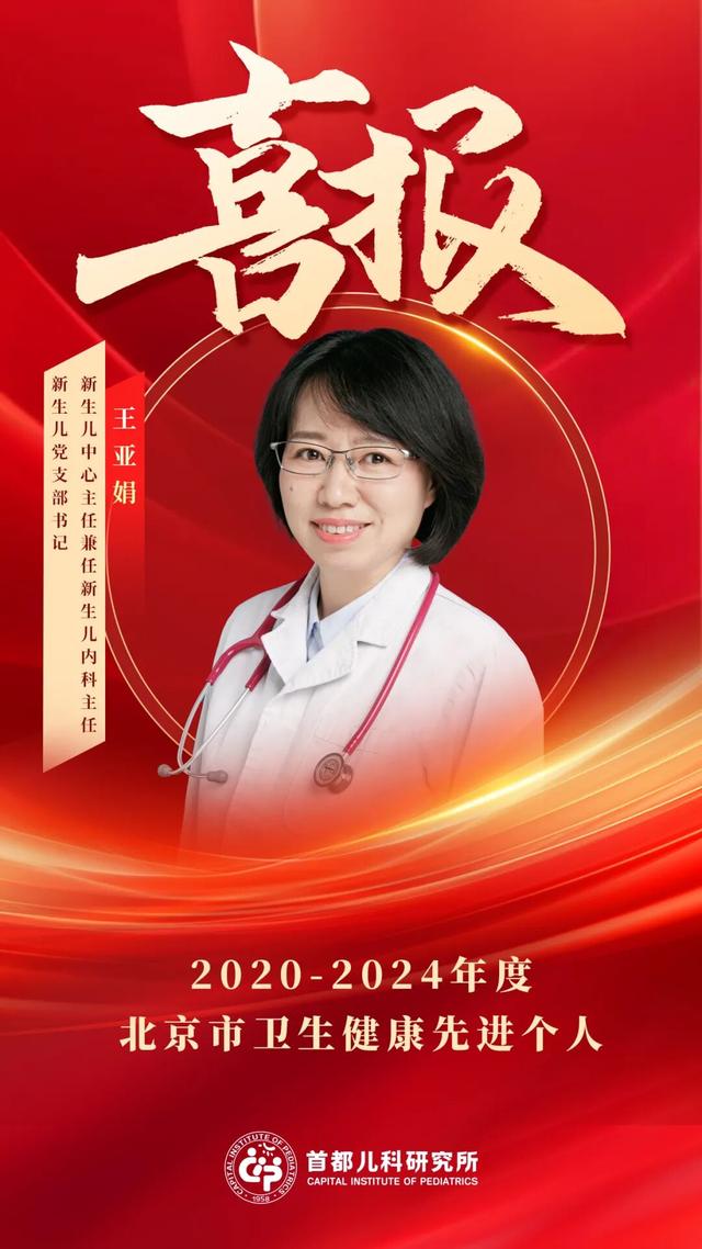 王亚娟,长期从事于新生儿救治工作(市级救治转运中心),业绩突出,2025年度北京市三八红旗手。以第一/通讯作者发表论文114篇,主编著作1部、副主编2部、参编21部,主持国家自然科学基金等科研项目17项,入选北京市科技新星计划、北京市“十百千”百人才、北京市卫生健康委高层次公共卫生技术人才“学科带头人”、朝阳区“凤凰计划”卫生领军人才等人才项目。