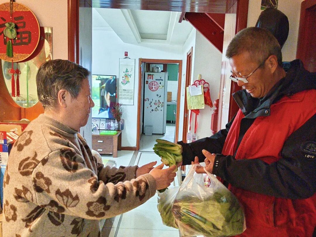 一天清晨,老周夫妇像往常一样送去油菜,反复敲门、呼唤,门内却始终寂静无声。不好的预感涌上心头,周新中立即联系社区工作人员。门被打开后,大家发现张奶奶因高烧已虚弱地蜷缩在被子里。正是因为这棵每日必达的油菜所带来的“查岗”,老人得以及时被发现并送医救治,转危为安。自此之后,简天秀每次将油菜放到张奶奶门口,都会特意提高音量多喊一句:“张奶奶,油菜到啦!”直到听见屋内传来回应,她才安心离开。