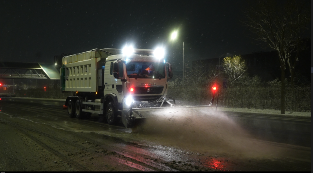 3月4日20时降雪开始后,集团迅速研判,对降雪集中区域采取机械作业方式,重点针对桥区、匝道及易湿滑区域开展清扫,避免路面结冰。21时30分,重点保障区域主路清雪作业基本完成;同时,周边步道人工除雪提前介入,力争“雪停路净”。降雪结束后,集团继续对积雪、雪泥路段进行滚刷作业,对积水路面开展路面吸水作业,并安排巡查人员动态查看路面情况。