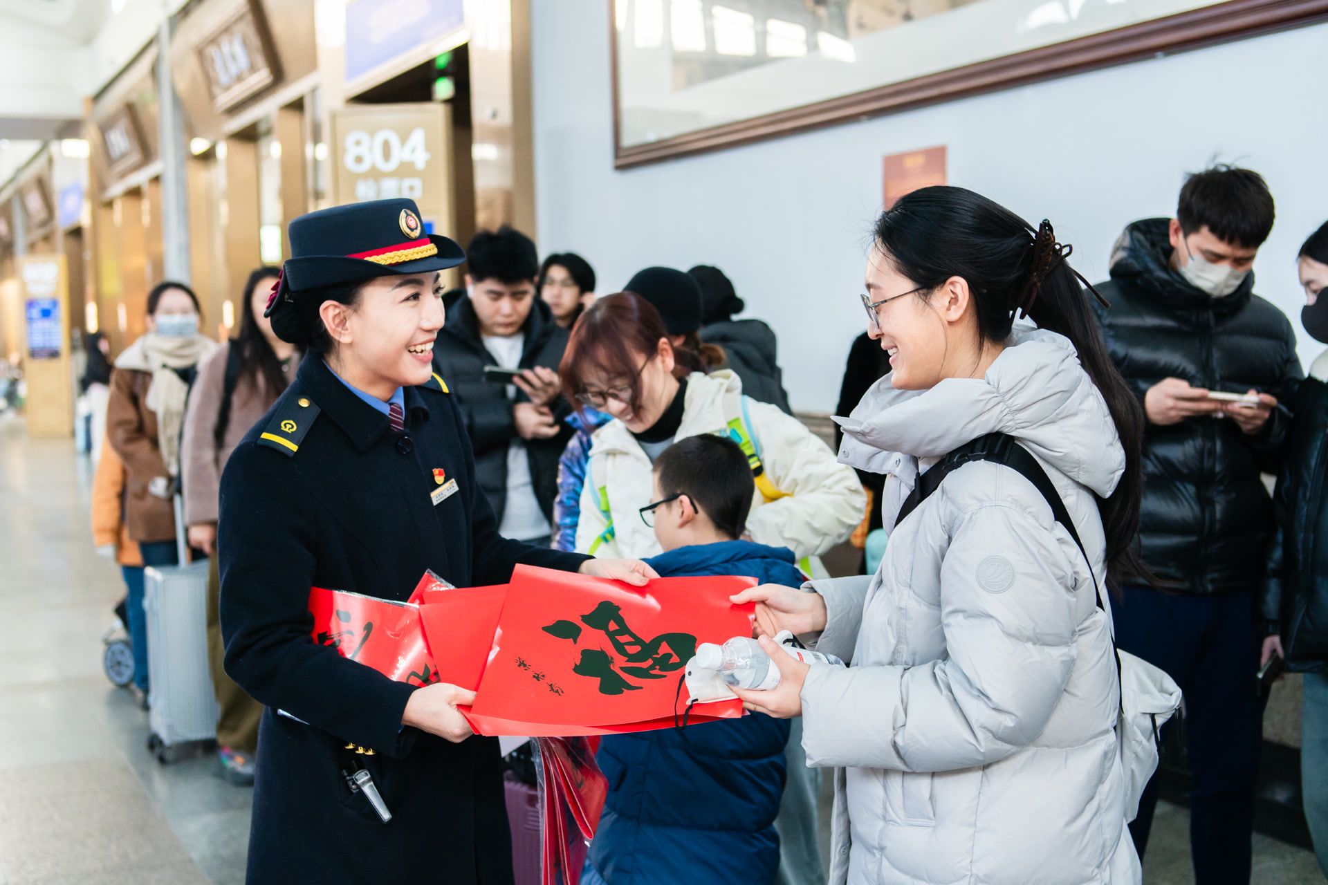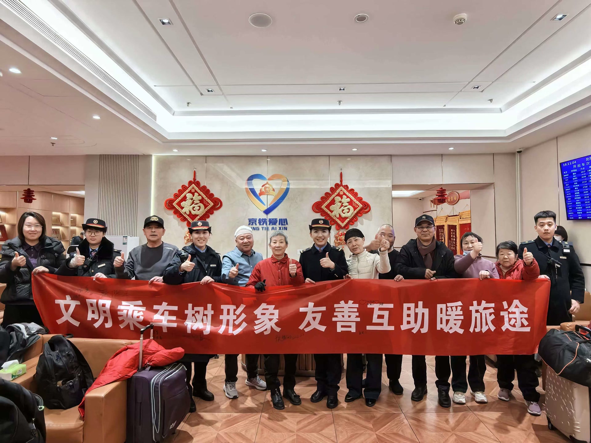 杜京林赶紧加上家属微信,拨通视频通话——镜头里,老人正端坐着喝水,家人悬了一早上的心,才算落回一半。与此同时,车站也联系了车站公安,协助家属同步报警。经确认,老人计划乘坐当日下午2点多的列车返回通辽老家。杜京林和同事们轮流陪在老人身边,端水、聊天,慢慢开解。老人起初沉默不语,后来渐渐松了口,话也多了。心里的那道坎,被人轻声细语地一点点化开了。