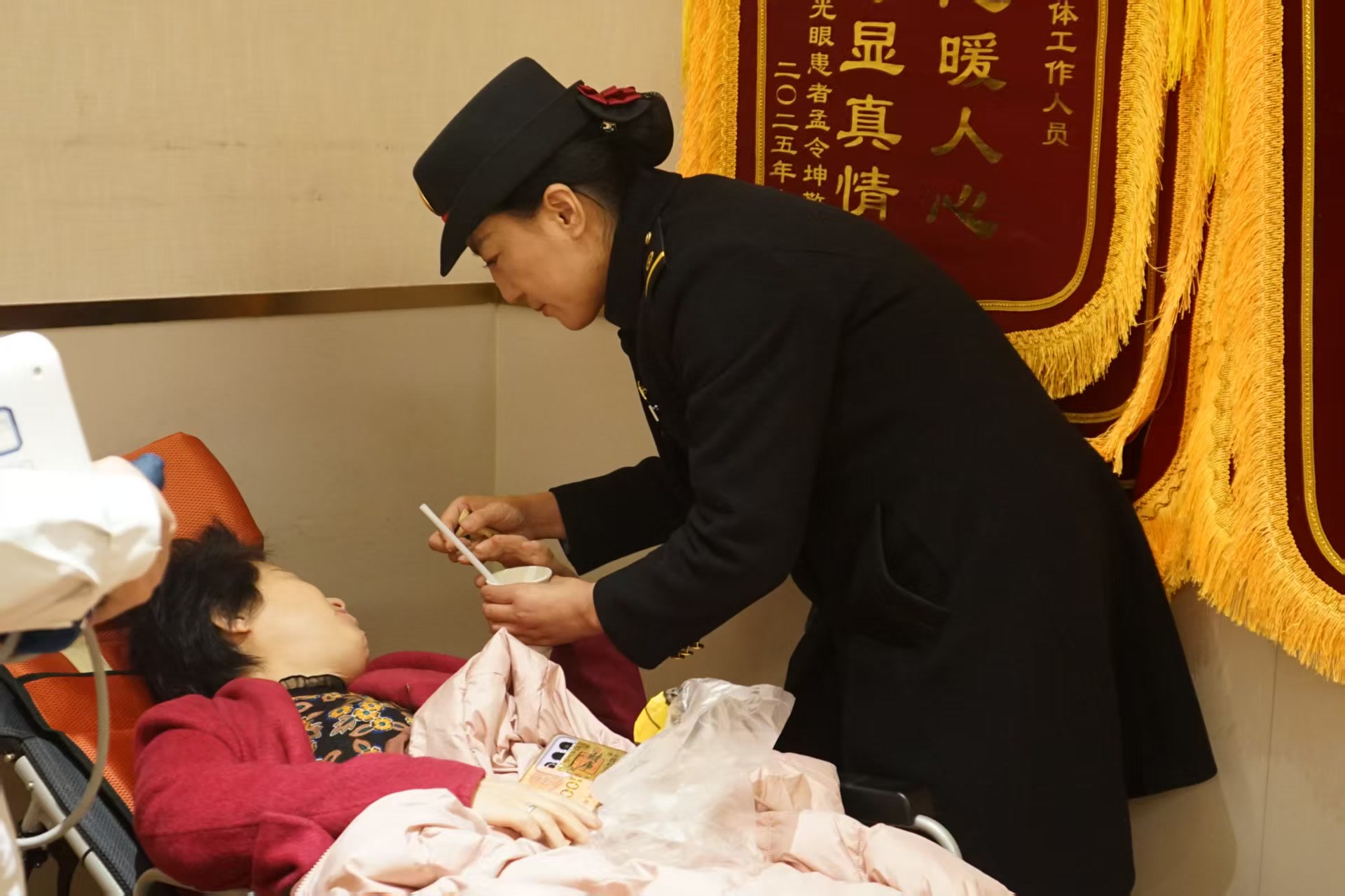 还有位常年往返北京就医的脑瘫患者,每次乘车都指定要找“小杜”。原来,杜京林总是提前在站台等候,细心协助患者上下车,还会根据季节变化为旅客准备保暖衣物或清凉饮品。久而久之,不少患者或家属和她成了朋友,每次到站都会说:“见到你,我们就放心了。”