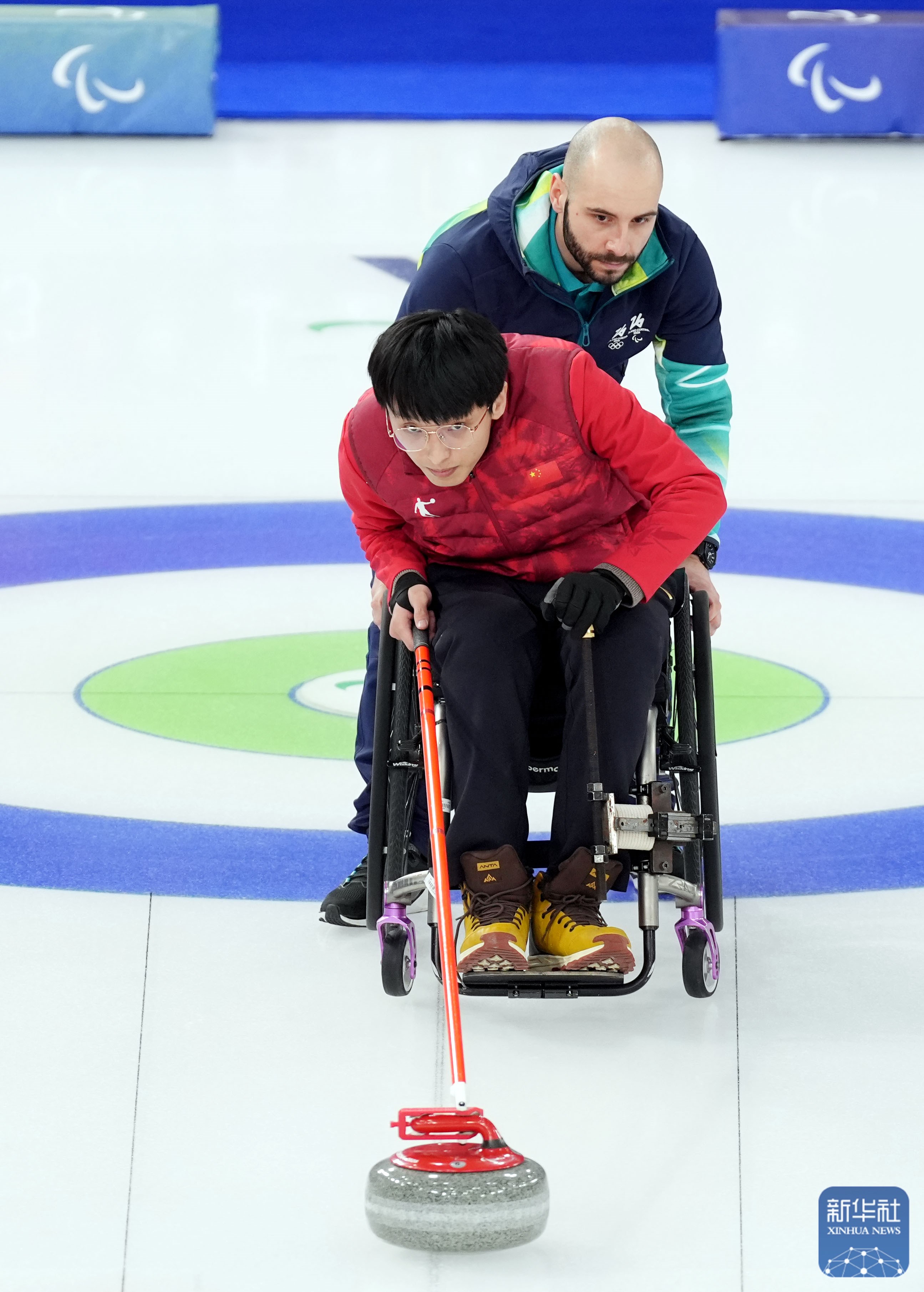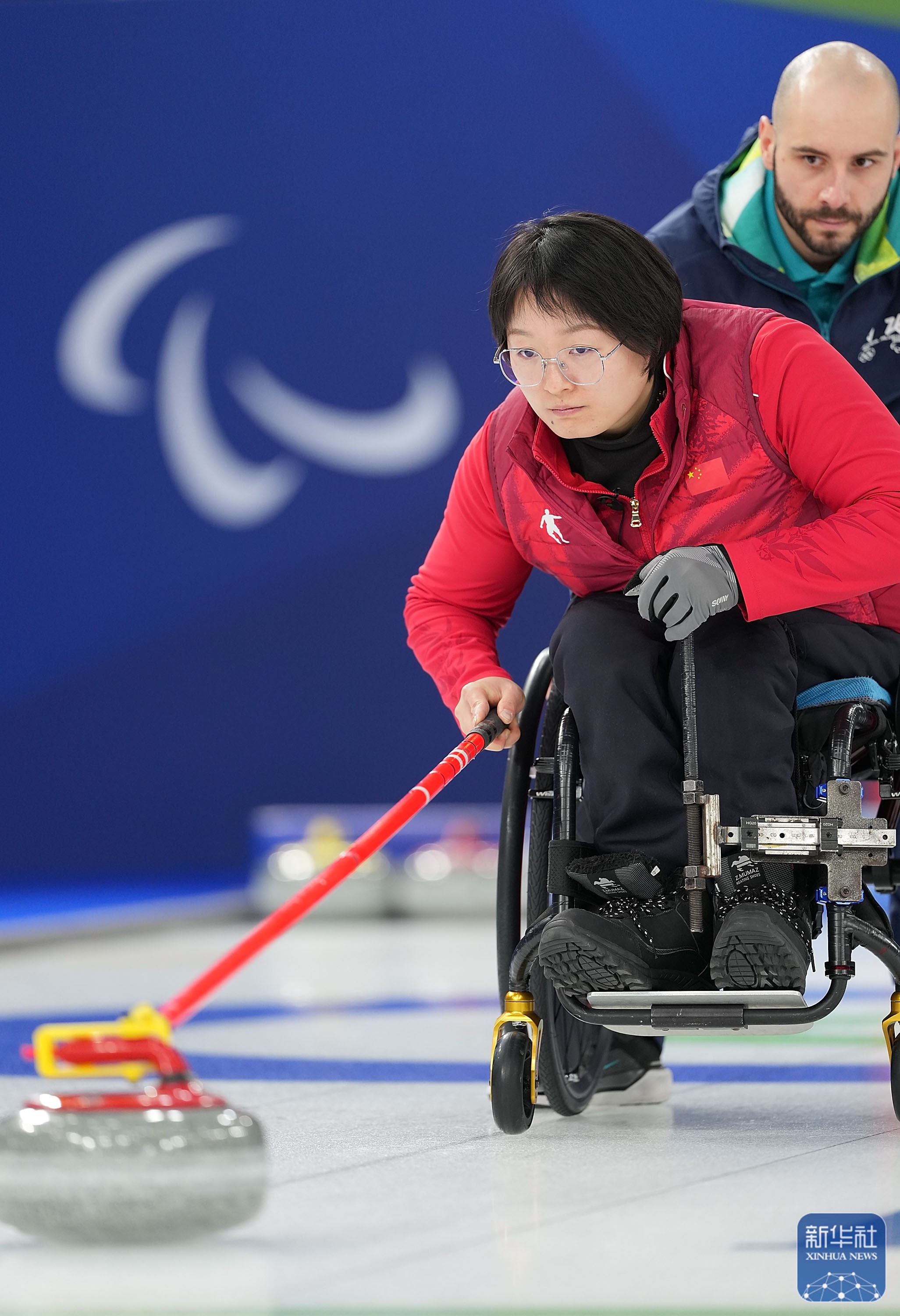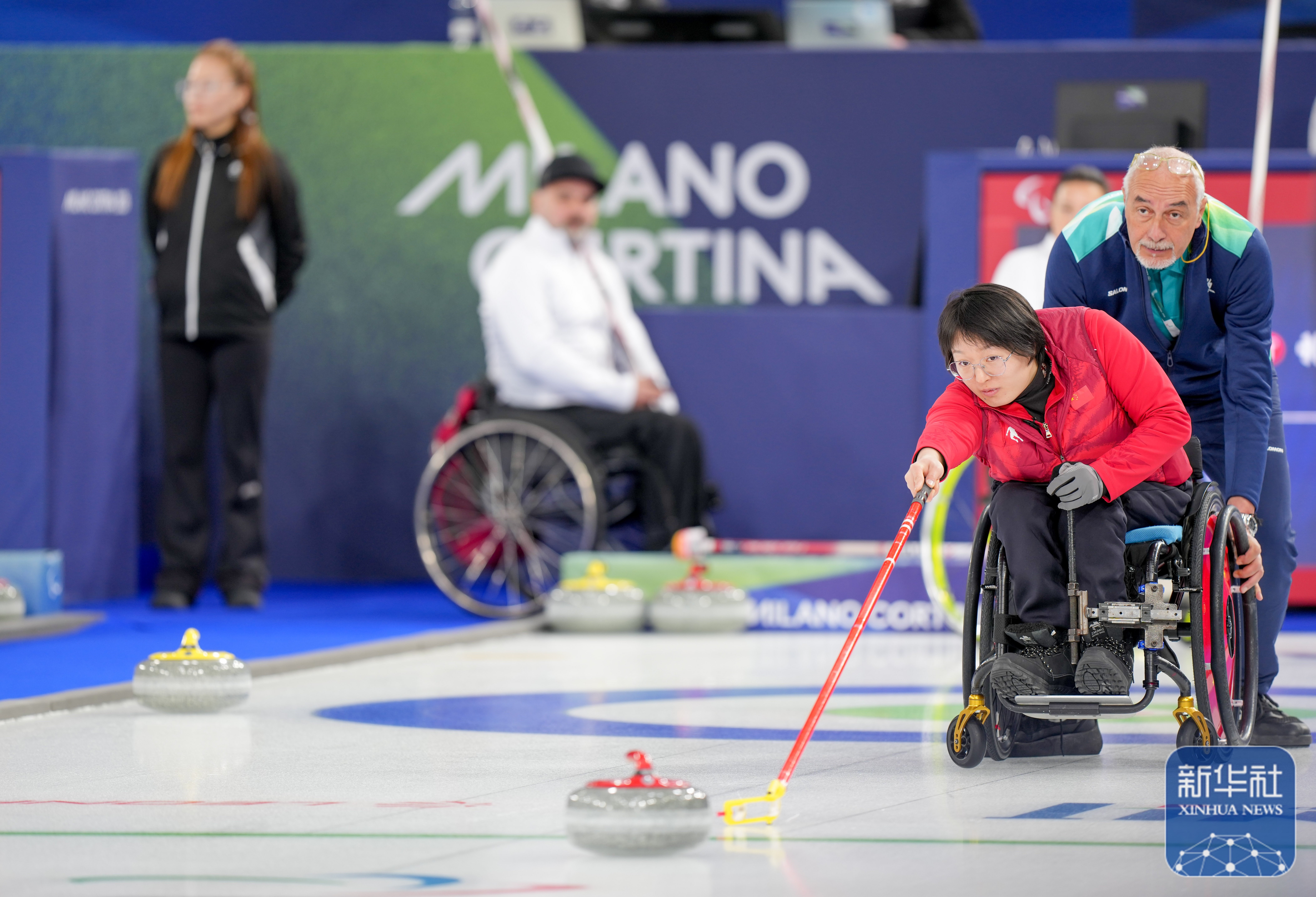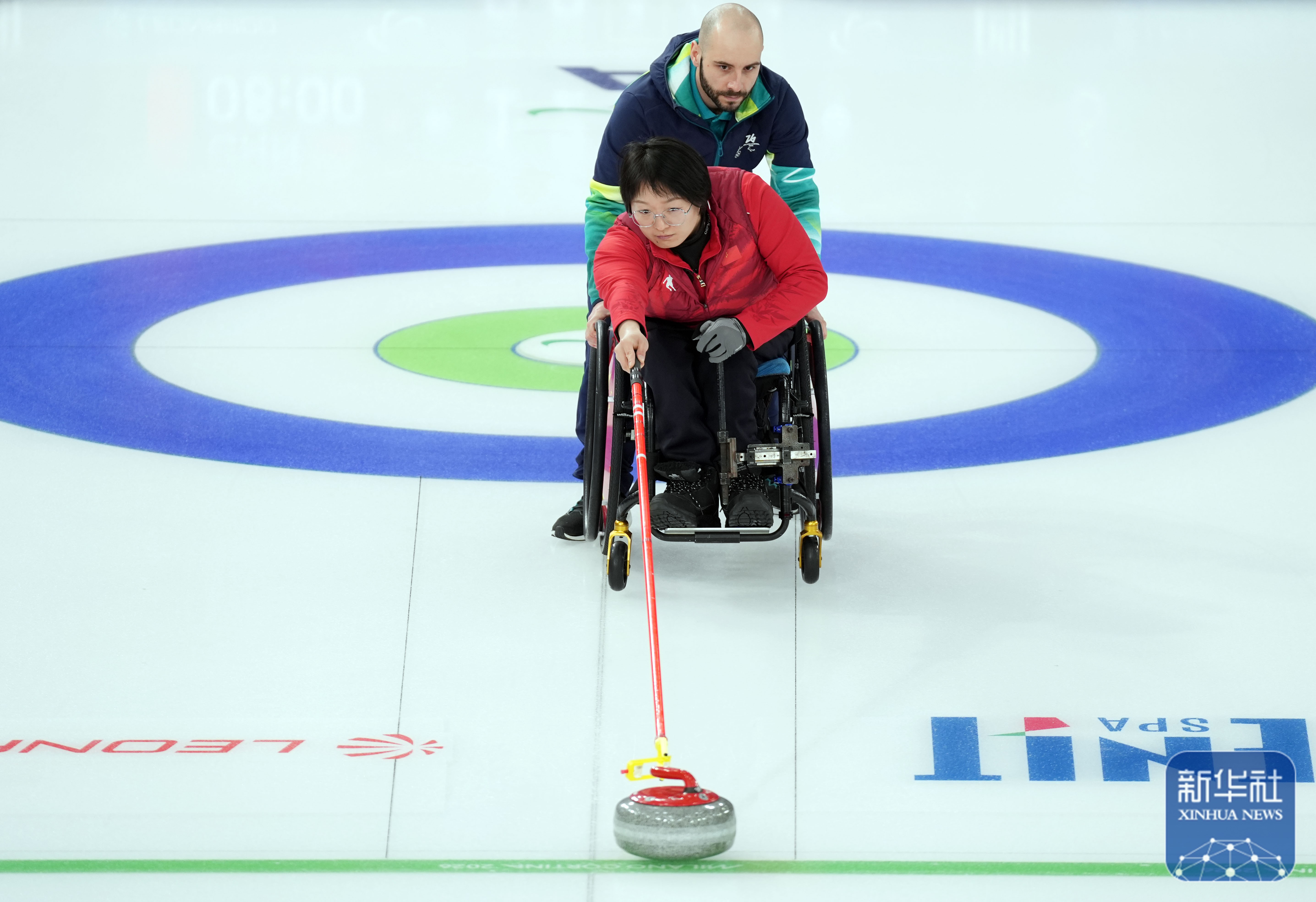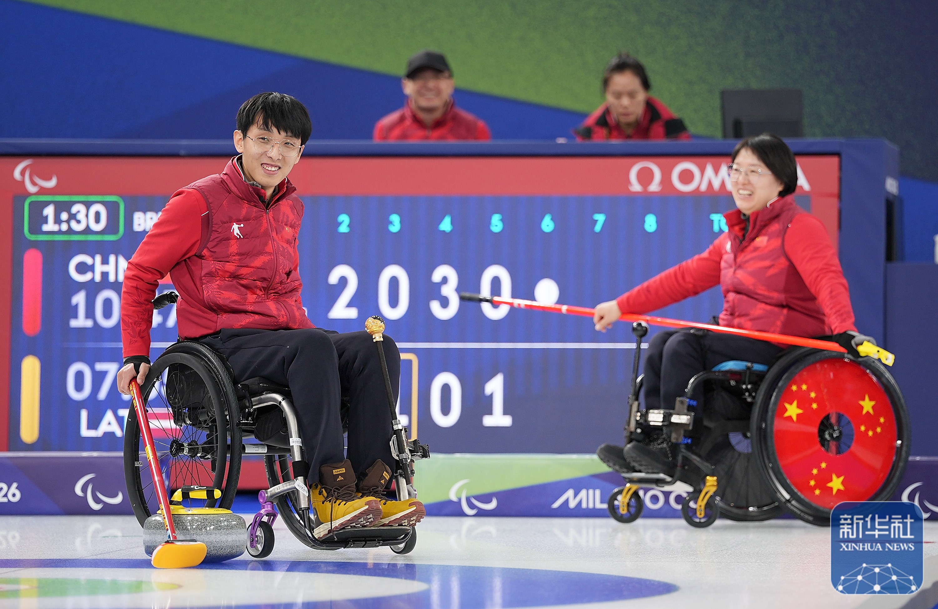 当地时间3月5日,在意大利科尔蒂纳举行的米兰-科尔蒂纳冬残奥会轮椅冰壶混双循环赛中,中国队10比2战胜拉脱维亚队。