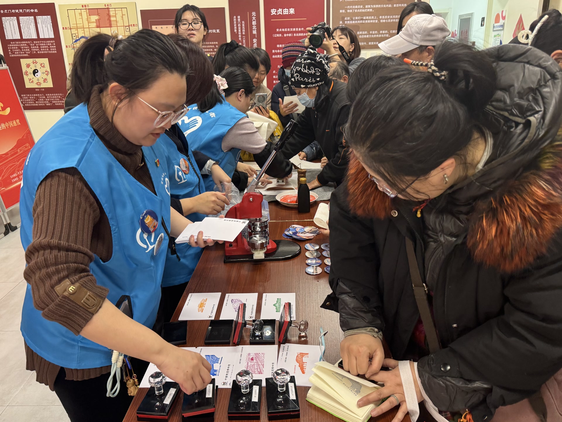 馆藏珍贵机车集章打卡、非遗手工雕版印刷、铁路元素胸章制作……居民们在展位前动手操作、沉浸式体验,一张张印着铁路元素的雕版作品,一枚枚亲手制作的铁路胸章,成为大家独有的“铁路文化纪念”。“我看到通知就来了,这次活动带给我很大的收获。”朱大爷手里,是一件刚刚印好的非遗手工雕版作品。