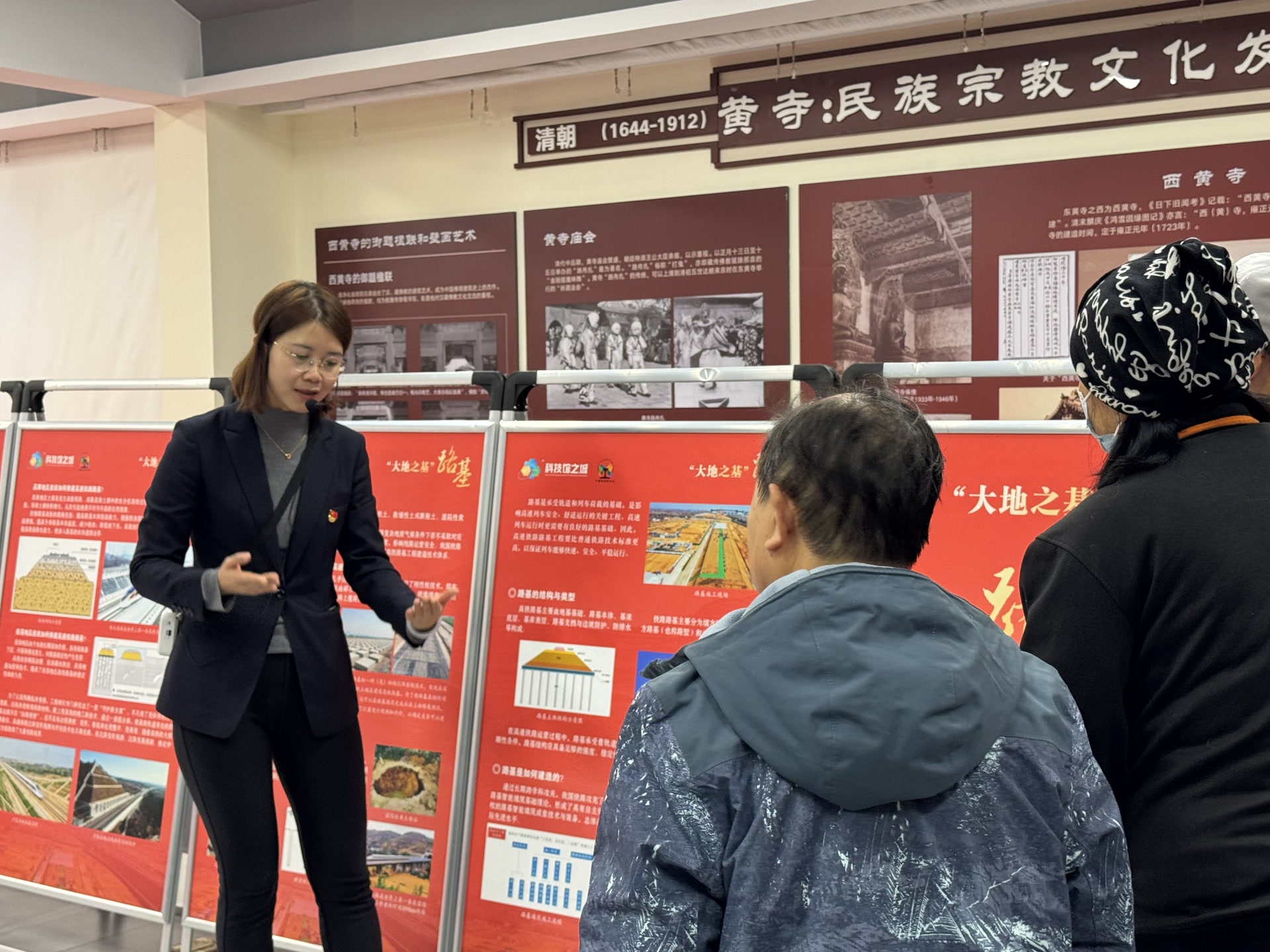 下午2点,《轨迹——穿山越壑的中国速度》专题展览正在社区展出,一排排展板吸引人们驻足观看。“岩溶地区由于水的长期溶蚀作用,容易导致路基开裂等情况发生,对路基稳定性产生危害……”博物馆讲解员讲述铁路在云贵川地貌中建造的难度,还用通俗易懂的语言为居民们科普中国铁路从蹒跚起步到高速腾飞的发展历程。