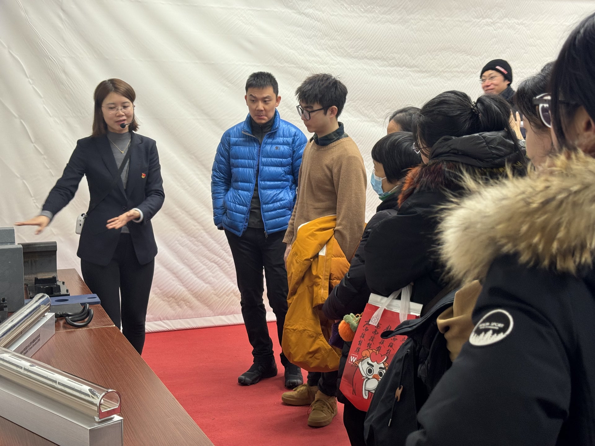 展板旁边,铁路轨道扣件系统模型和精致的“复兴号”动车组模型等展品,吸引居民拍照留念。科普互动环节,铁路知识问答吸引居民们踊跃抢答,答对者收获了铁路主题文创礼品。