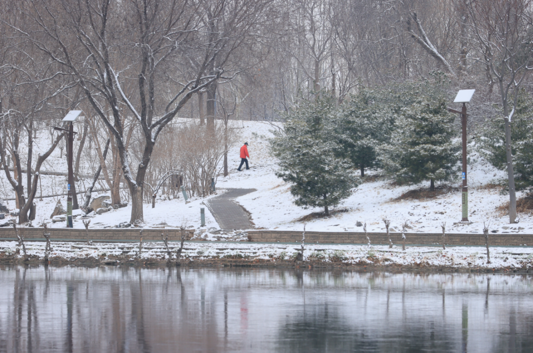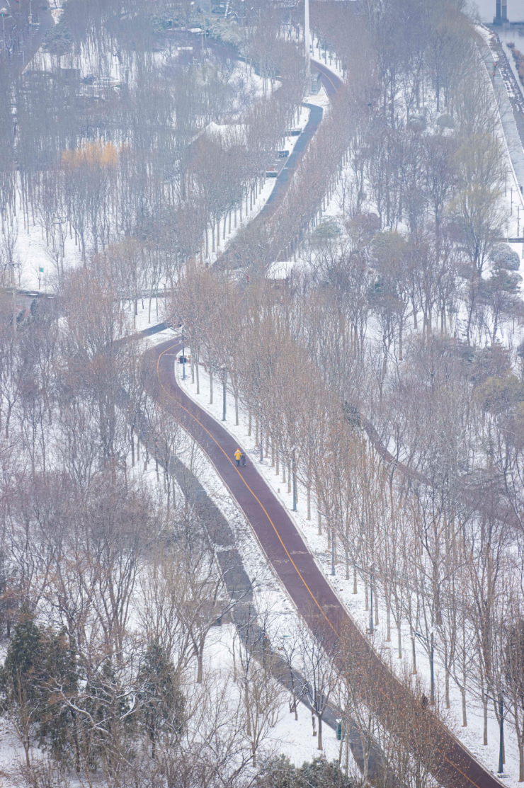 雪落亦城,勾勒出独有的温婉景致。枝头与白雪相映,初春意趣藏于雪色间。市民漫步赏雪,用镜头定格美景。