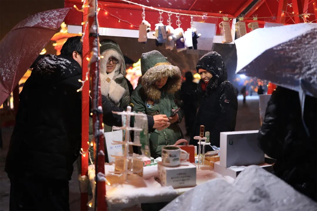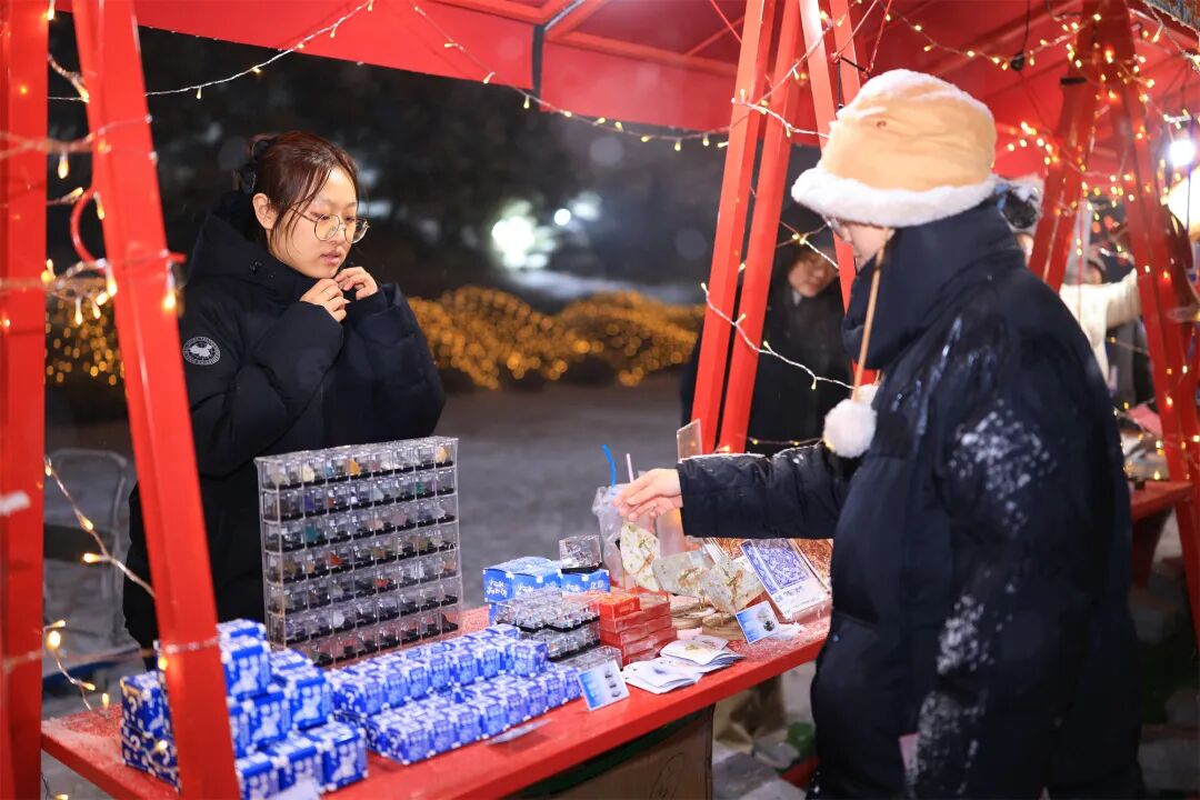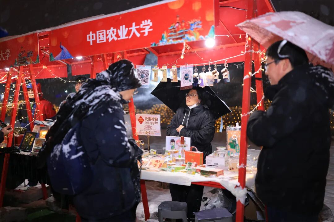 中国农业大学谢宝红老师感叹道:“今天看到琳琅满目的彩灯和高校文创,真的太惊喜了!我们农大带来了科技加持的‘食品级’口红、润唇膏,还有科技小院试验田小麦制作的碱水包挂饰。感谢统战部的精心组织,让校友们回到海淀这个‘大统战之家’,感受到大家庭的年味儿。”