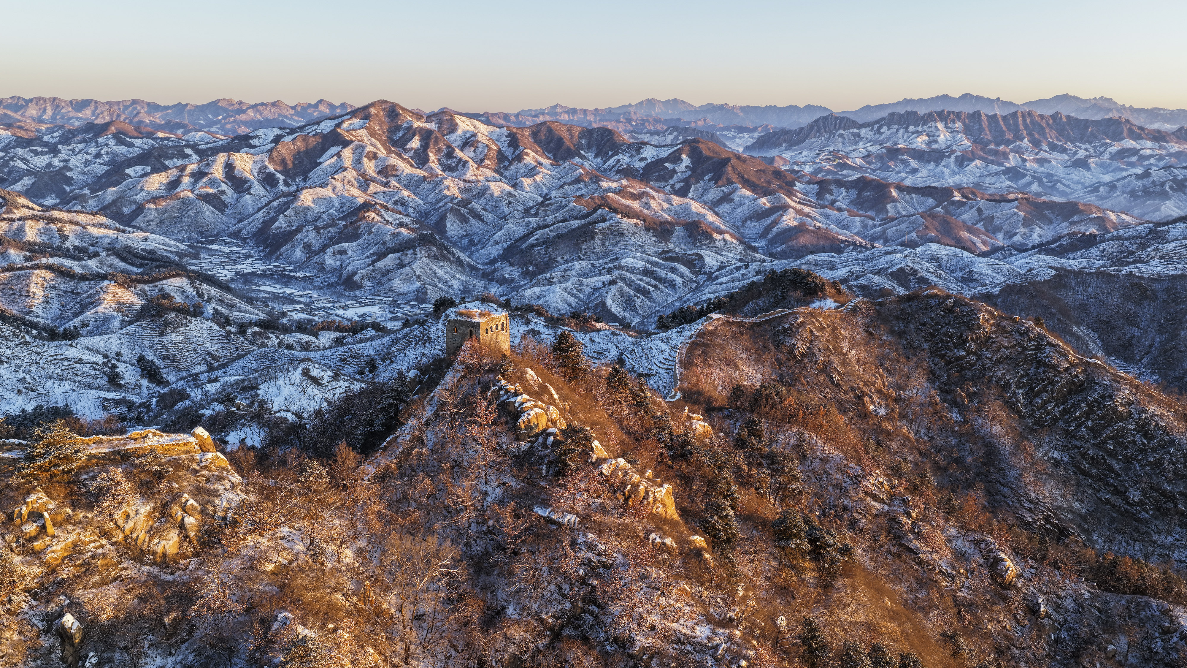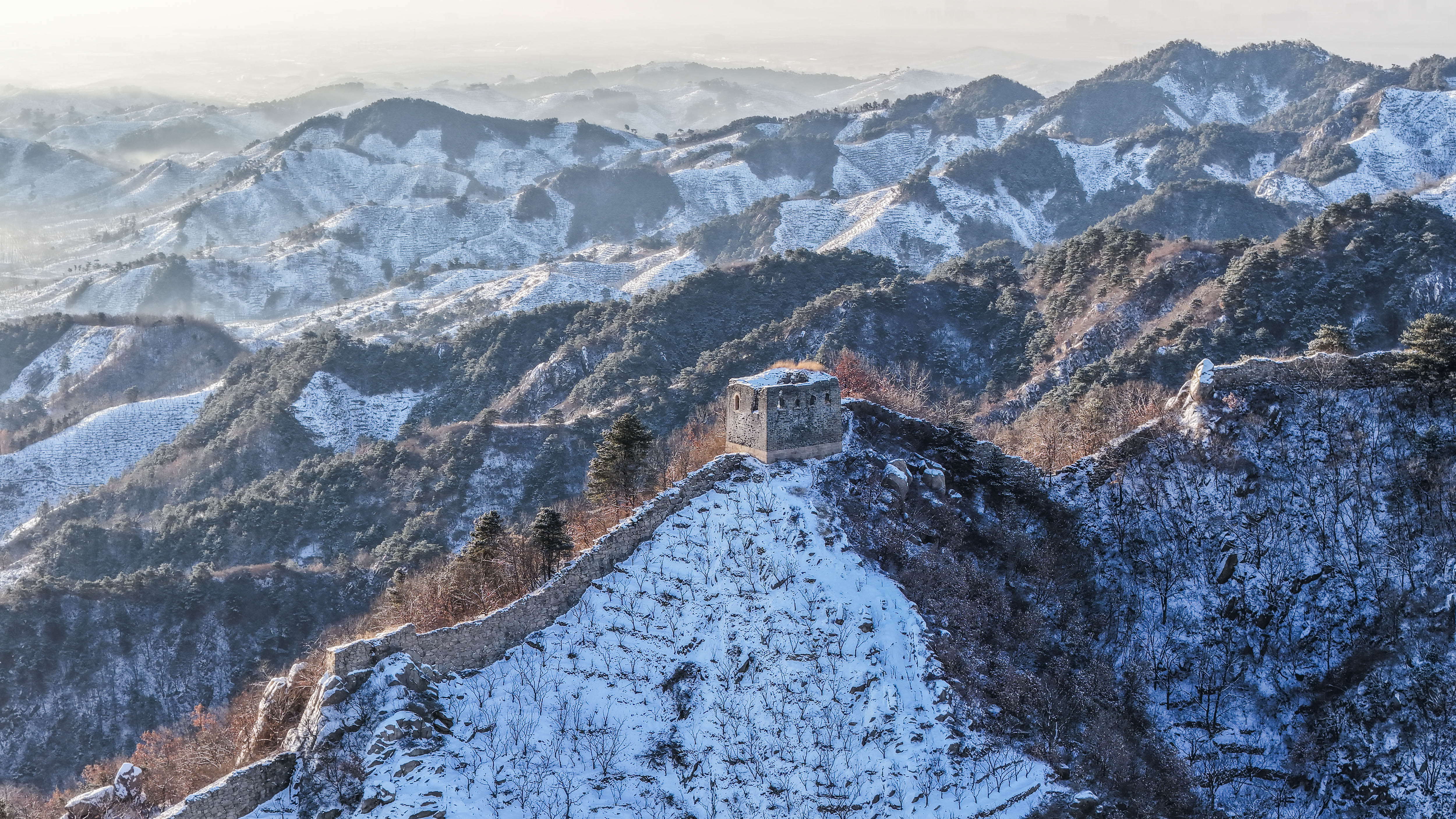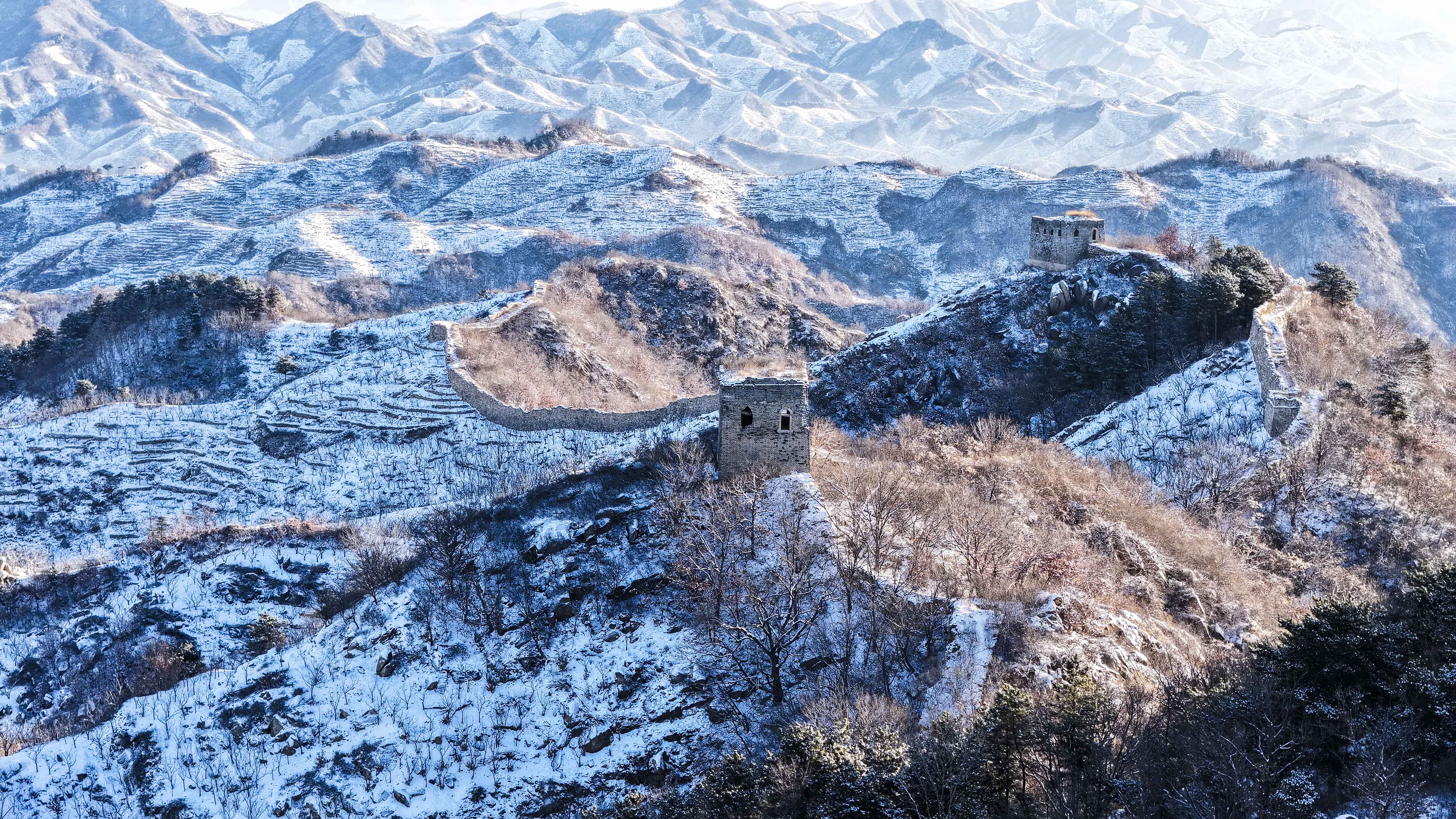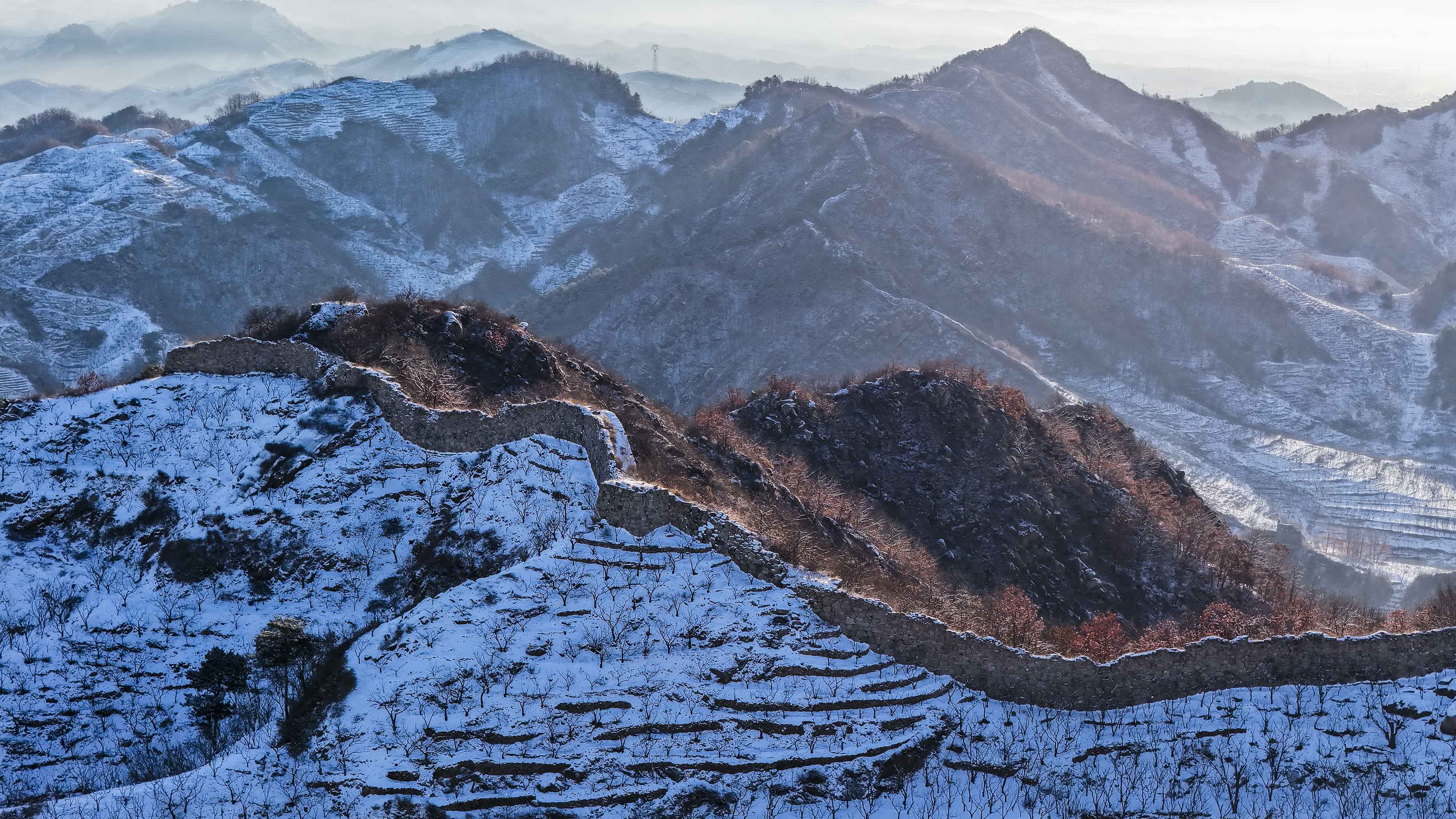 雪后初霁,百里古长城银装素裹壮美如画