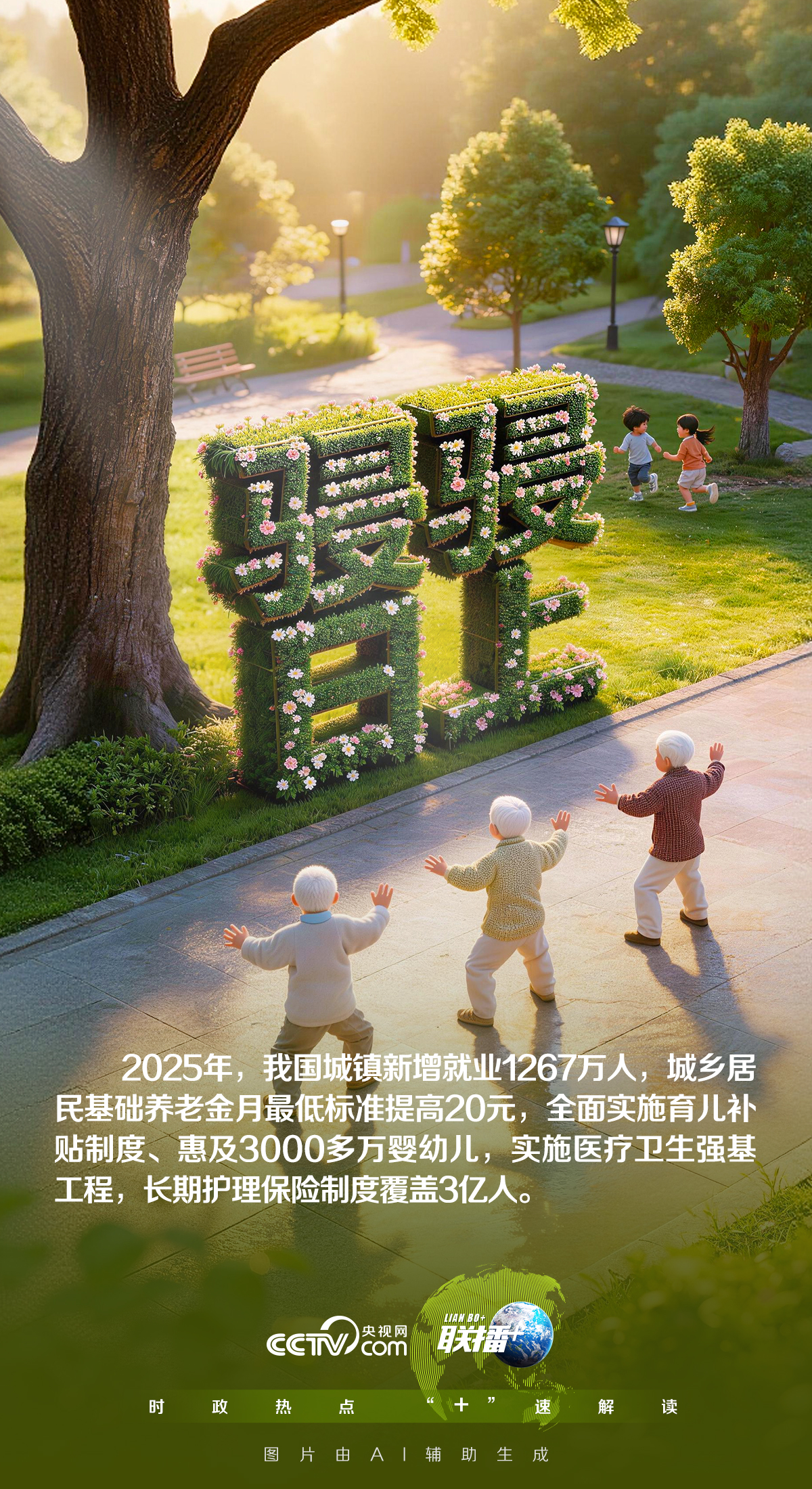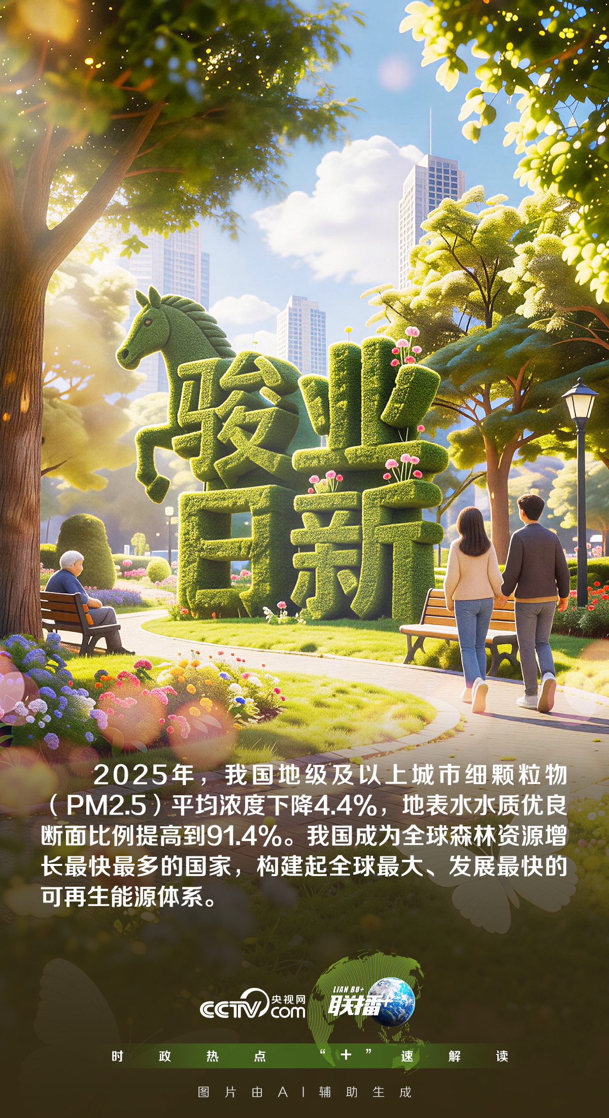 翻开今年的《政府工作报告》,2025年,我国地级及以上城市细颗粒物(PM2.5)平均浓度下降4.4%,社会消费品零售总额突破50万亿元,学前一年免费教育政策惠及1400万儿童,全国城镇新增就业1267万人……