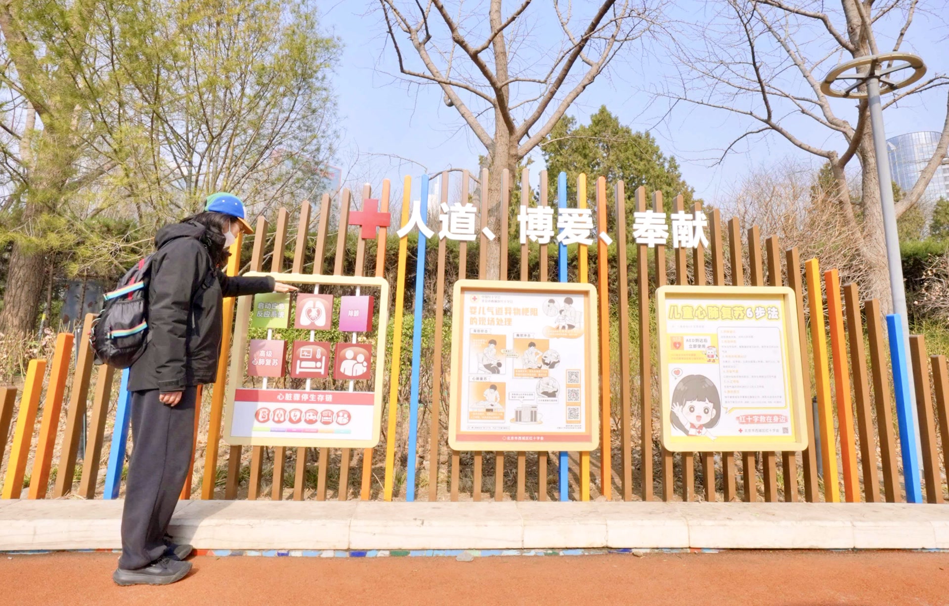 儿童活动区是公园一大亮点,专门打造游戏墙、翻翻乐等互动设施,融入婴儿海姆立克急救法、儿童心肺复苏6步法等少儿专属急救内容,以寓教于乐的方式让孩子在玩耍中学习自救互救知识。园区座椅、草丛地插牌等载体,同步宣传无偿献血、造血干细胞捐献等红十字“三献”知识,让市民在休闲漫步中潜移默化接受公益熏陶。