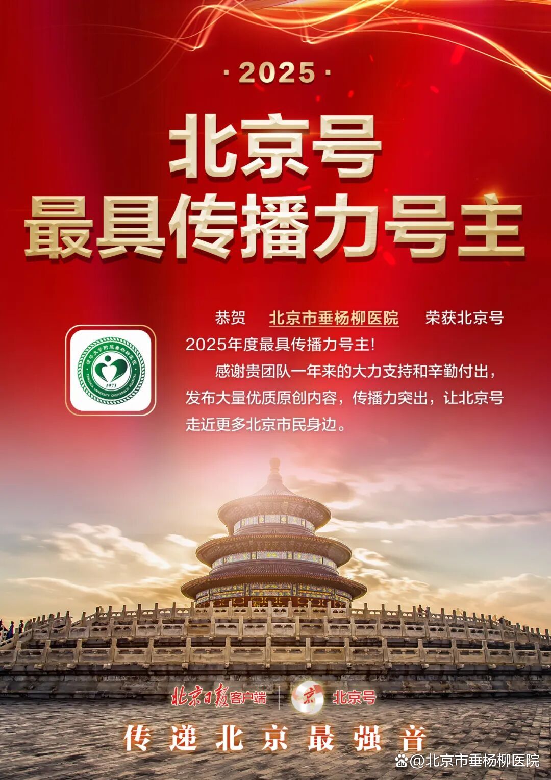 2026年3月4日,在北京日报报业集团主办的“共创·共赢——北京日报2026创作者思享会”上,北京日报客户端北京号“2025年度人气号主”正式揭晓。北京市垂杨柳医院北京号凭借在健康科普领域的持续深耕与突出表现,荣获“最具传播力号主”称号。