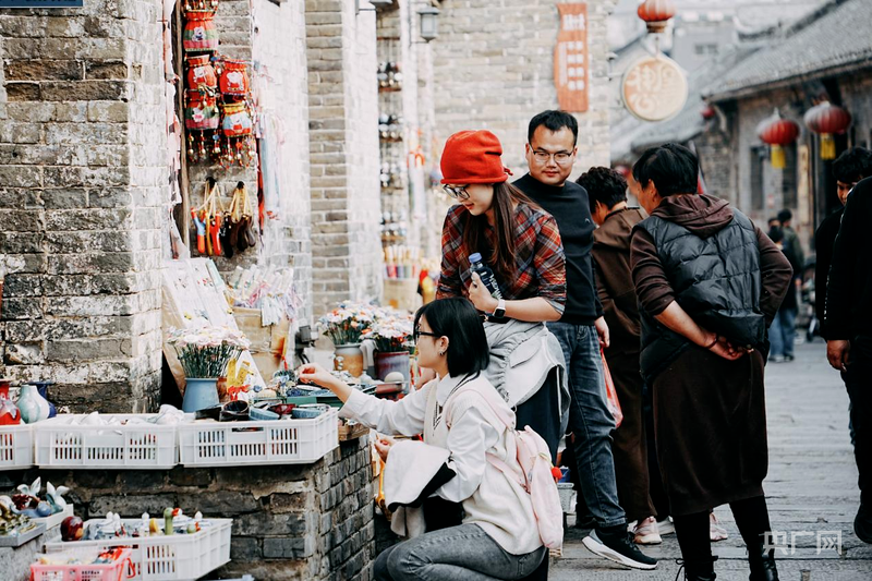 游客在神垕镇七里长街挑选文创产品(央广网记者 张羲轮 摄)