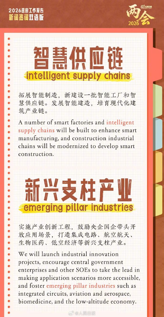 “未来能源”“‘中国服务’品牌”“新兴支柱产业”“世界级城市群”……政府工作报告18个新词热词翻译,一组实用双语学习卡,转发收藏学起来。