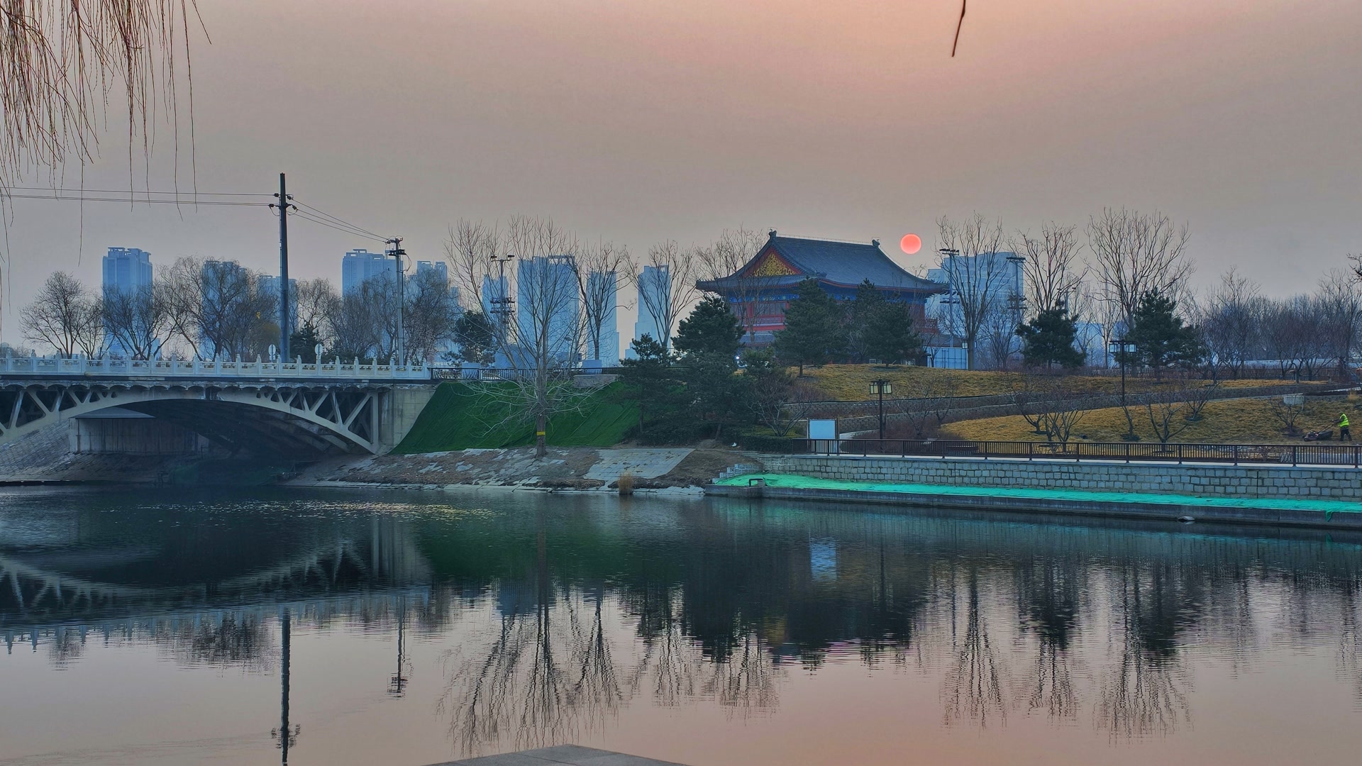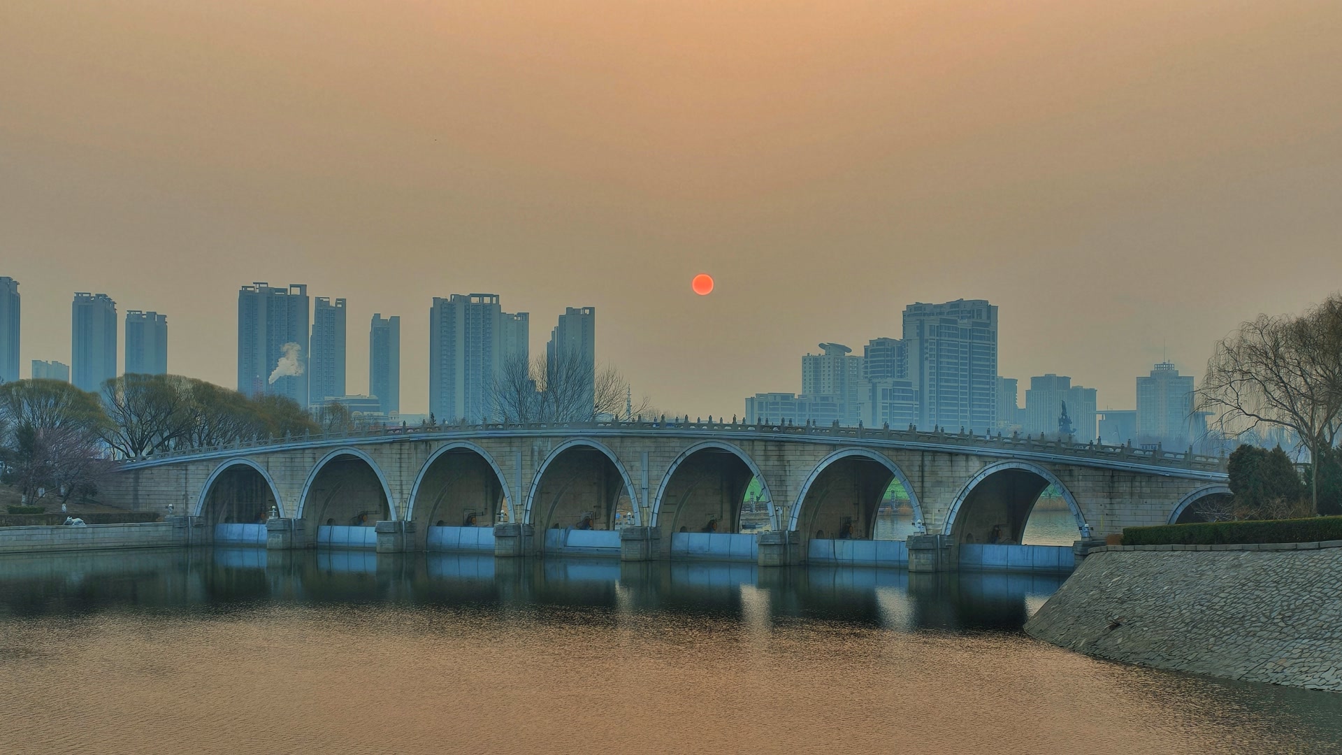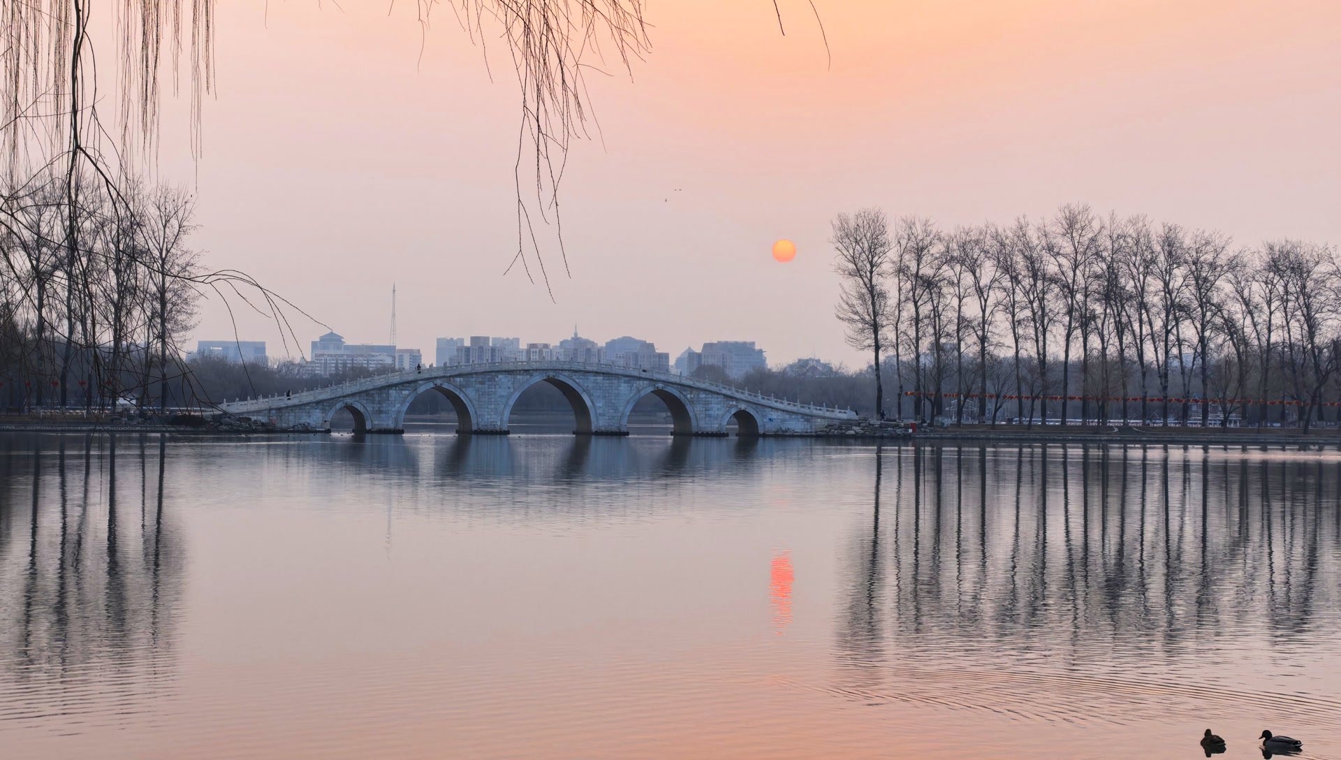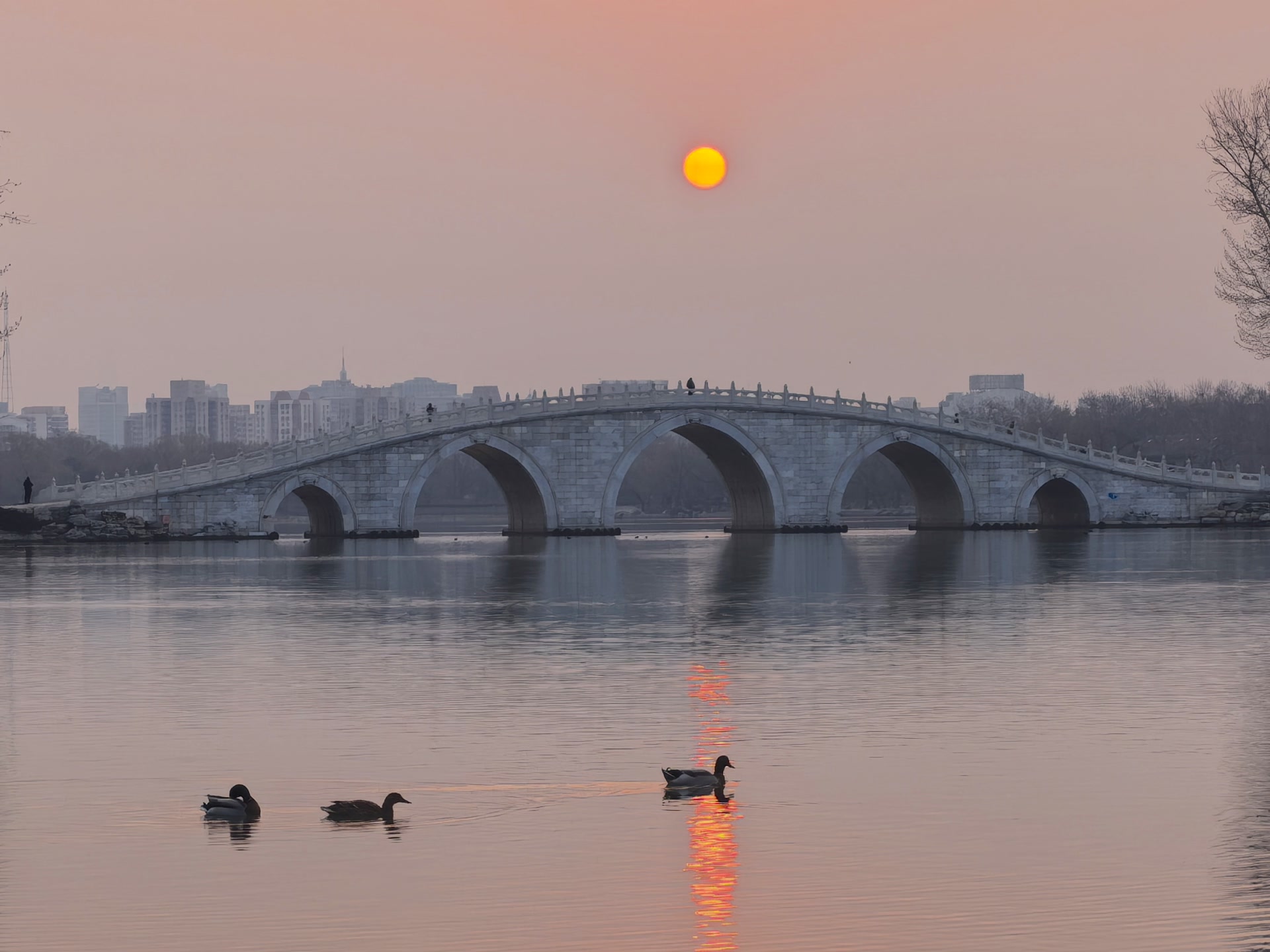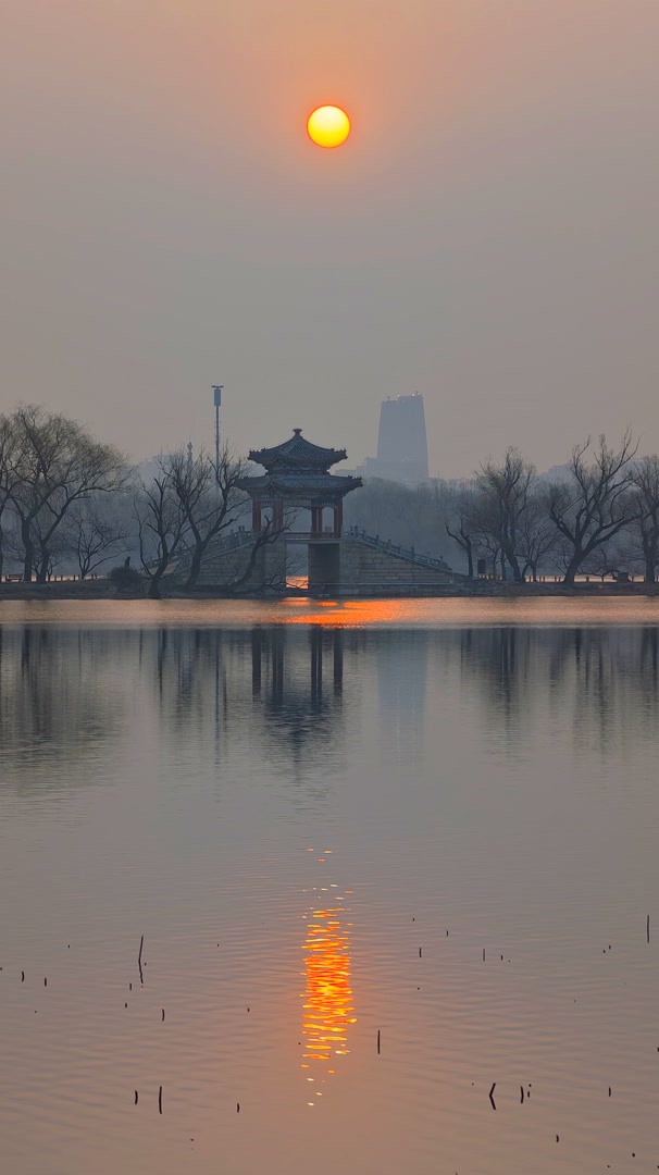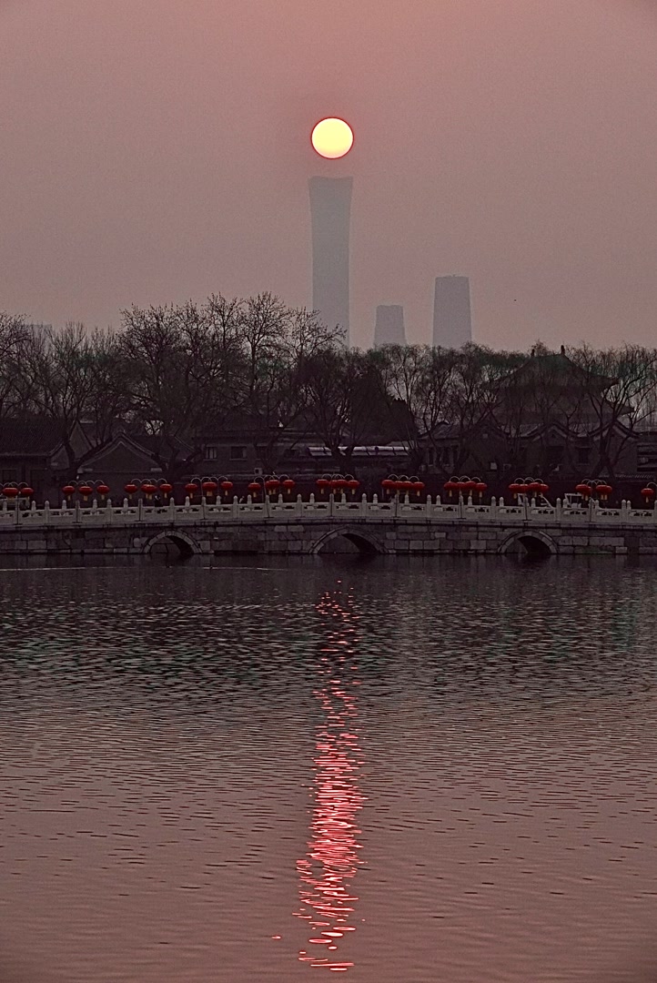 3月8日北京清晨,朝阳像薄雾腌出了鸭蛋黄